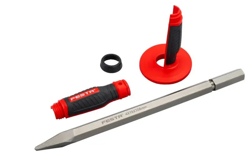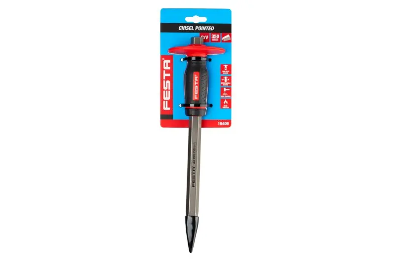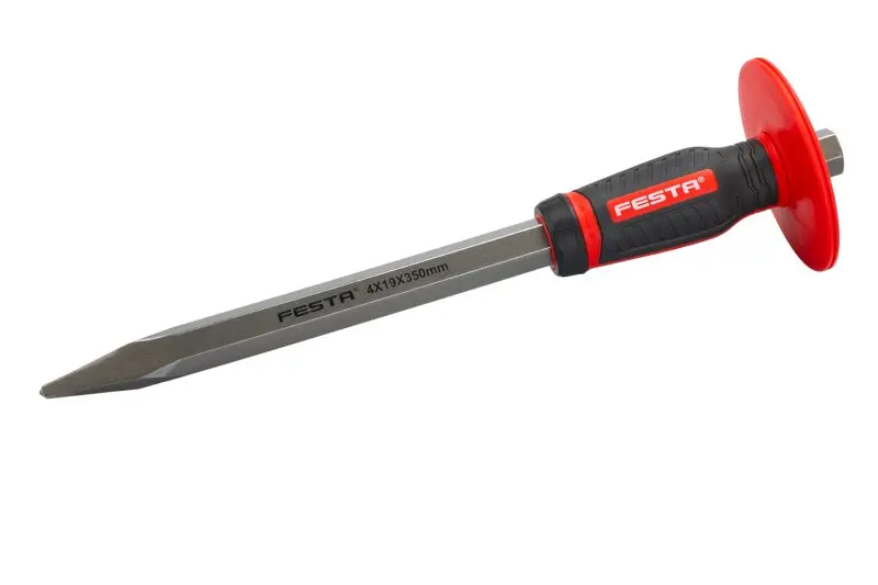 Sekáč (majzlík, majzl) špičatý s plastovou ochranou. Materiál chrom-vanadium. Vhodný pro práci s kamenem, cihlou, stavebním materiálem.