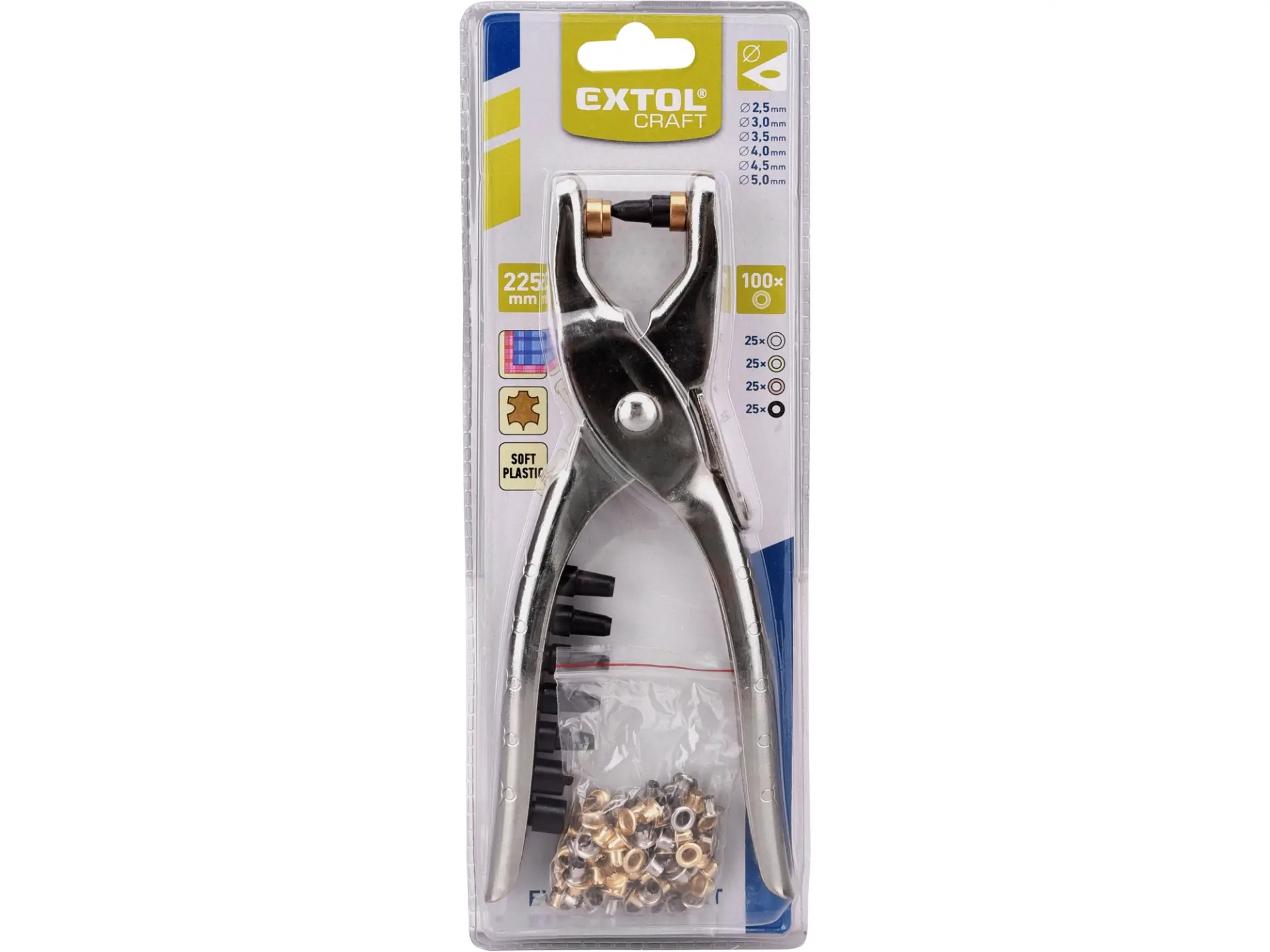 průměry děr: 2,5-3-3,5-4-4,5-5mm, průměry oček: vnitřní 4 mm/vnější 8mm