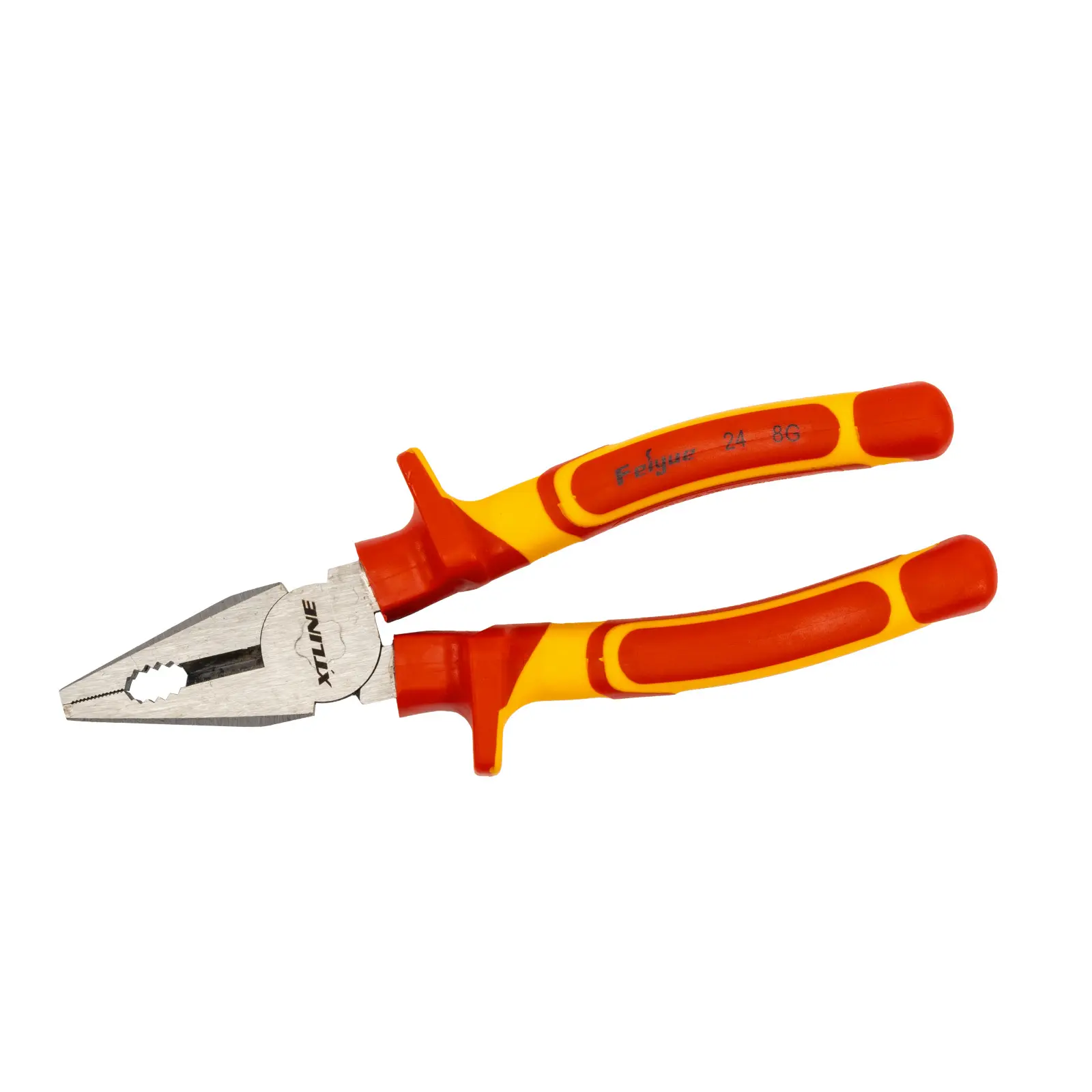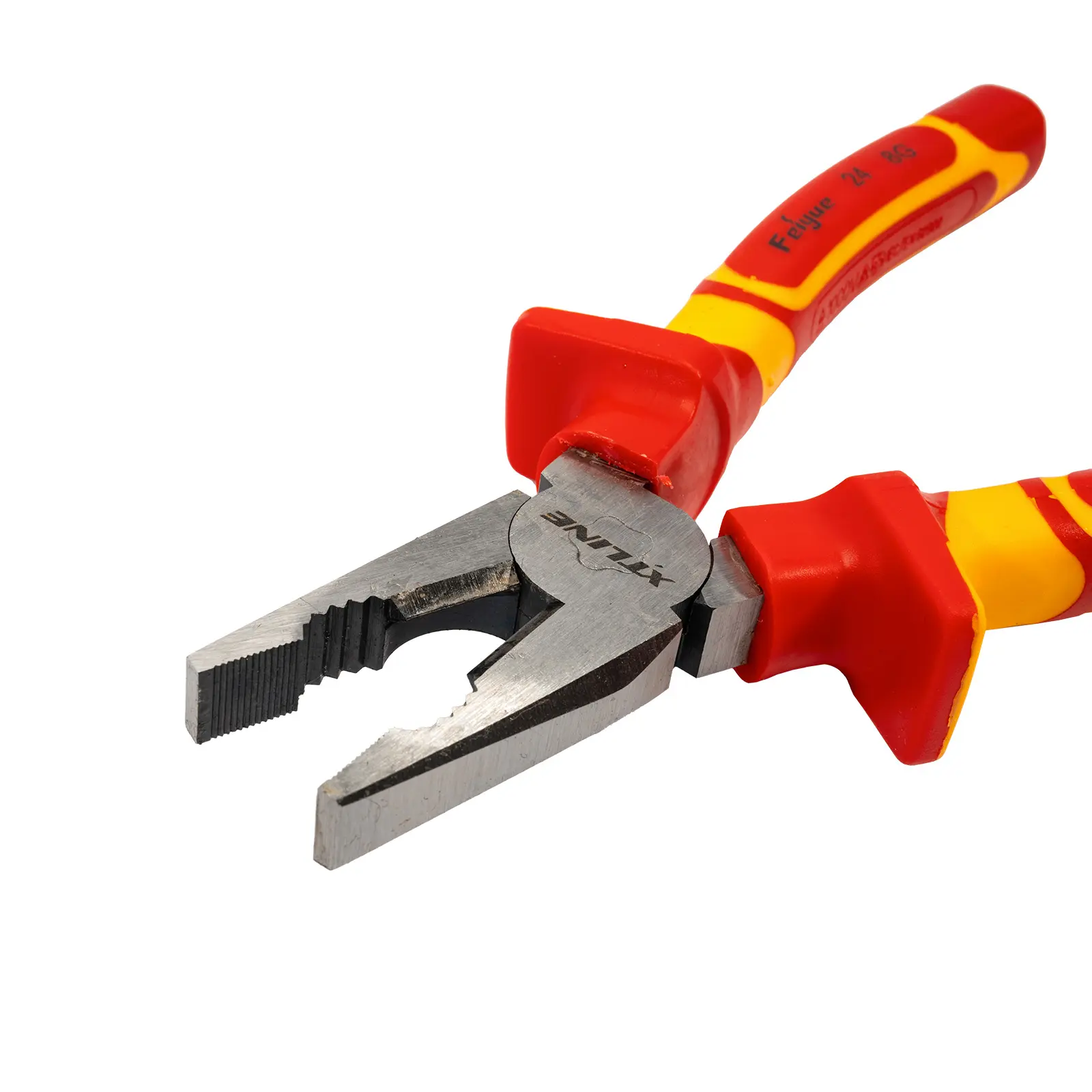 Elektrikářské kleště pro práci s přístroji pod napětím d 1000V splňující všechny požadavky normyVDE 60900. Vyrobené speciálně pro práci na elektrických zařízeních tak, aby byla zajištěna Vašebezpečnost. Čelisti z CrV oceli s leštěným povrchem. Ochrana proti přeskočení jiskry a protisklouznutí ruky.