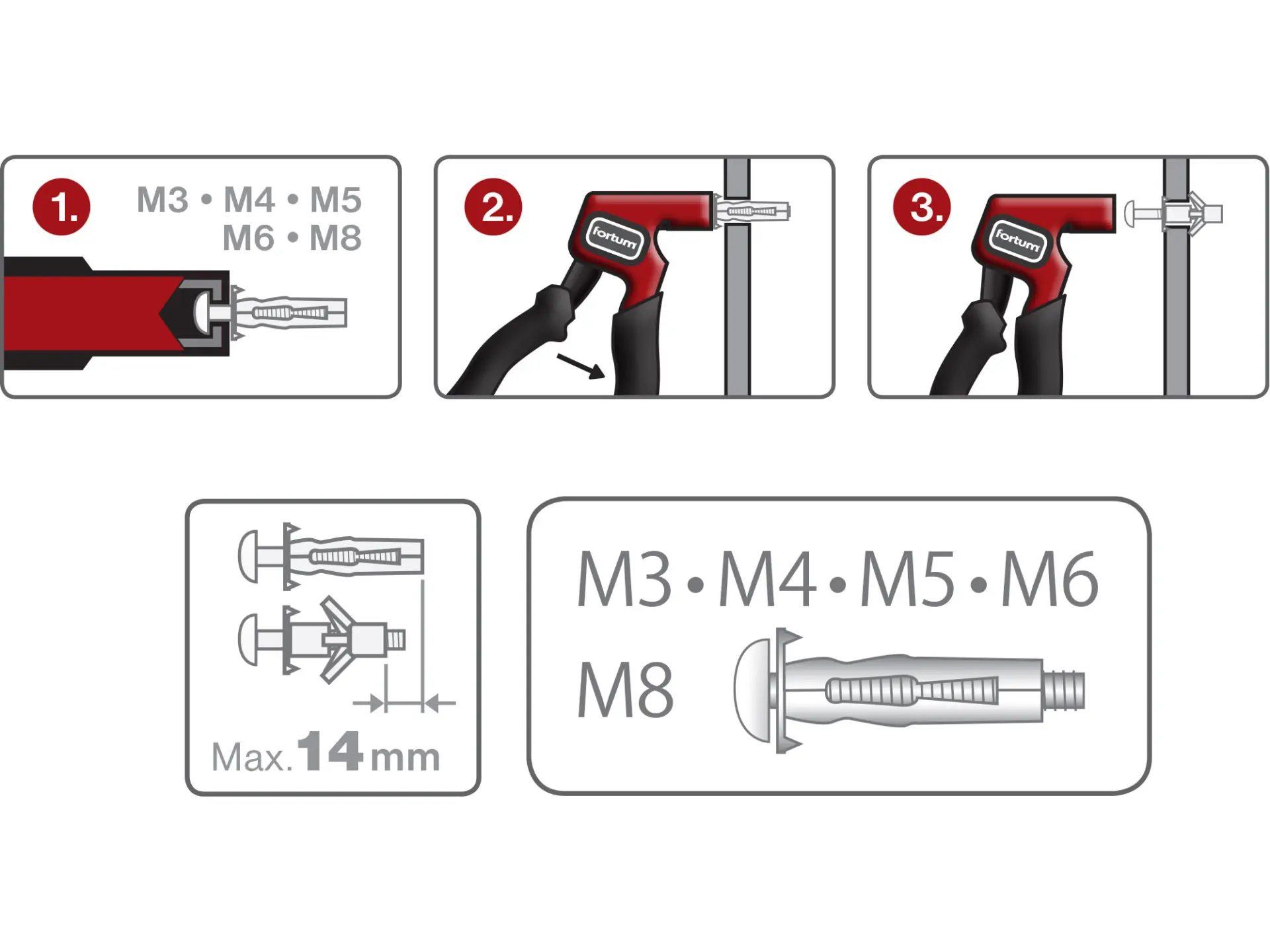 pro dutinové hmoždinky o velikosti M3-M4-M5-M6-M8