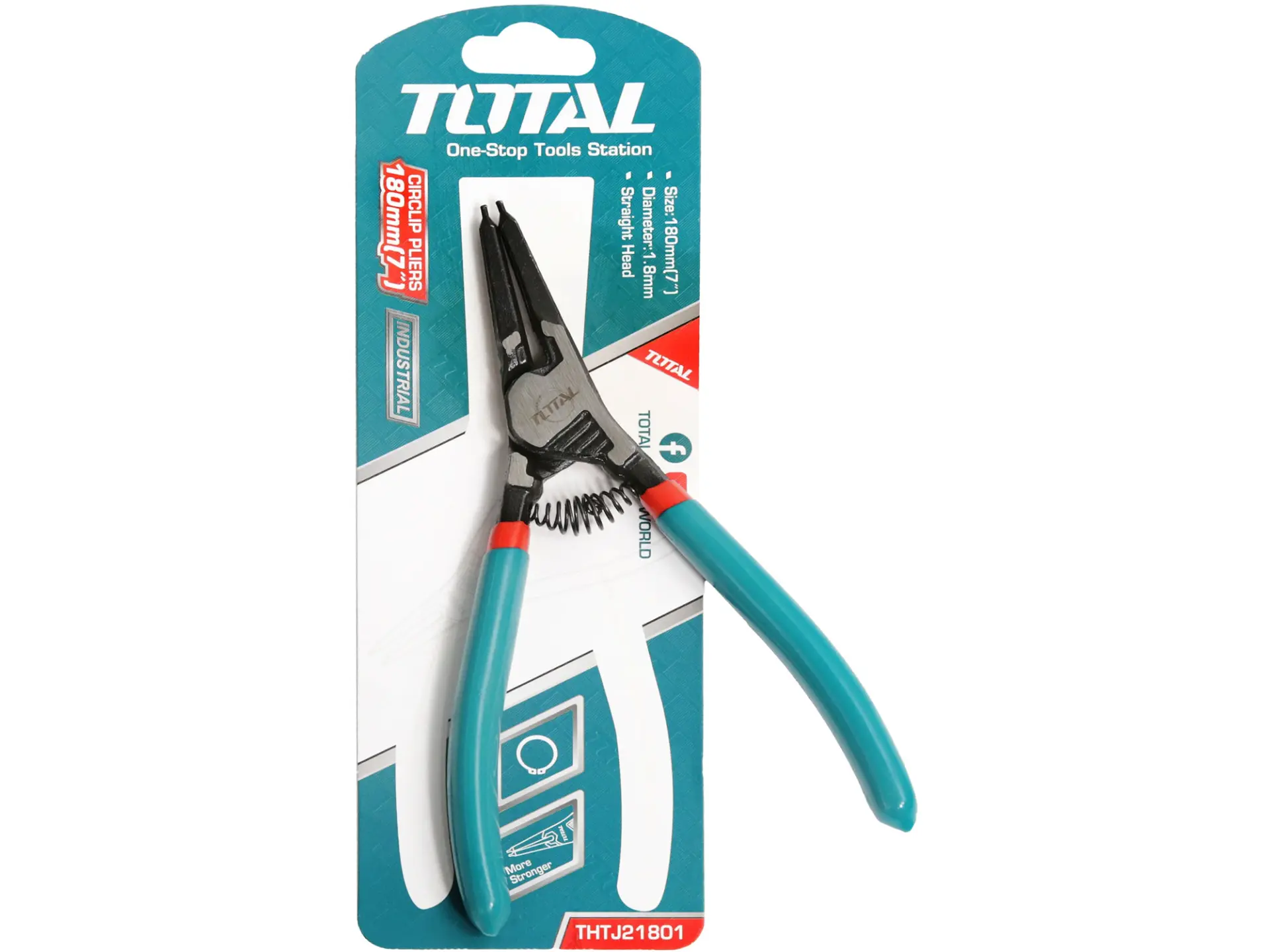 Kleště na pojistné kroužky s rovnou hlavou, Kleště na vnější pojistné kroužky, Velikost: 180 mm, Průměr hlavy: 1,8 mm.