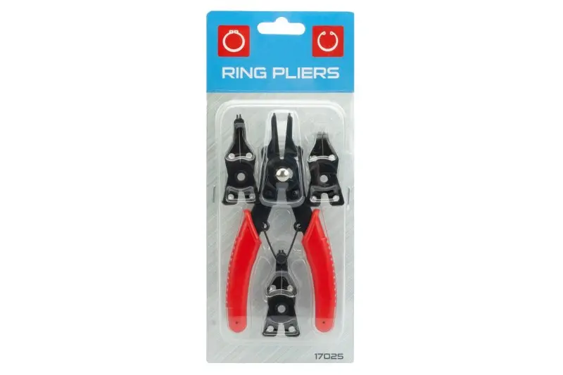 Kleště na pojistné (segrovy) kroužky - SADA, snadno výměnitelné čelisti pro vnitřní nebo vnější segrovy kroužky, ergonomické rukojeti, blistr.