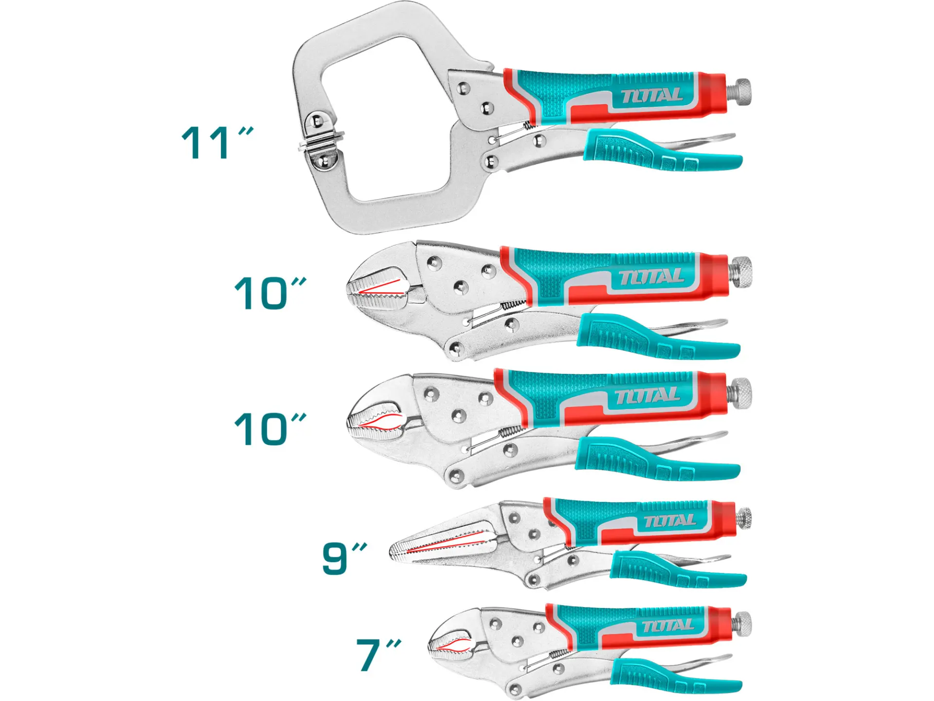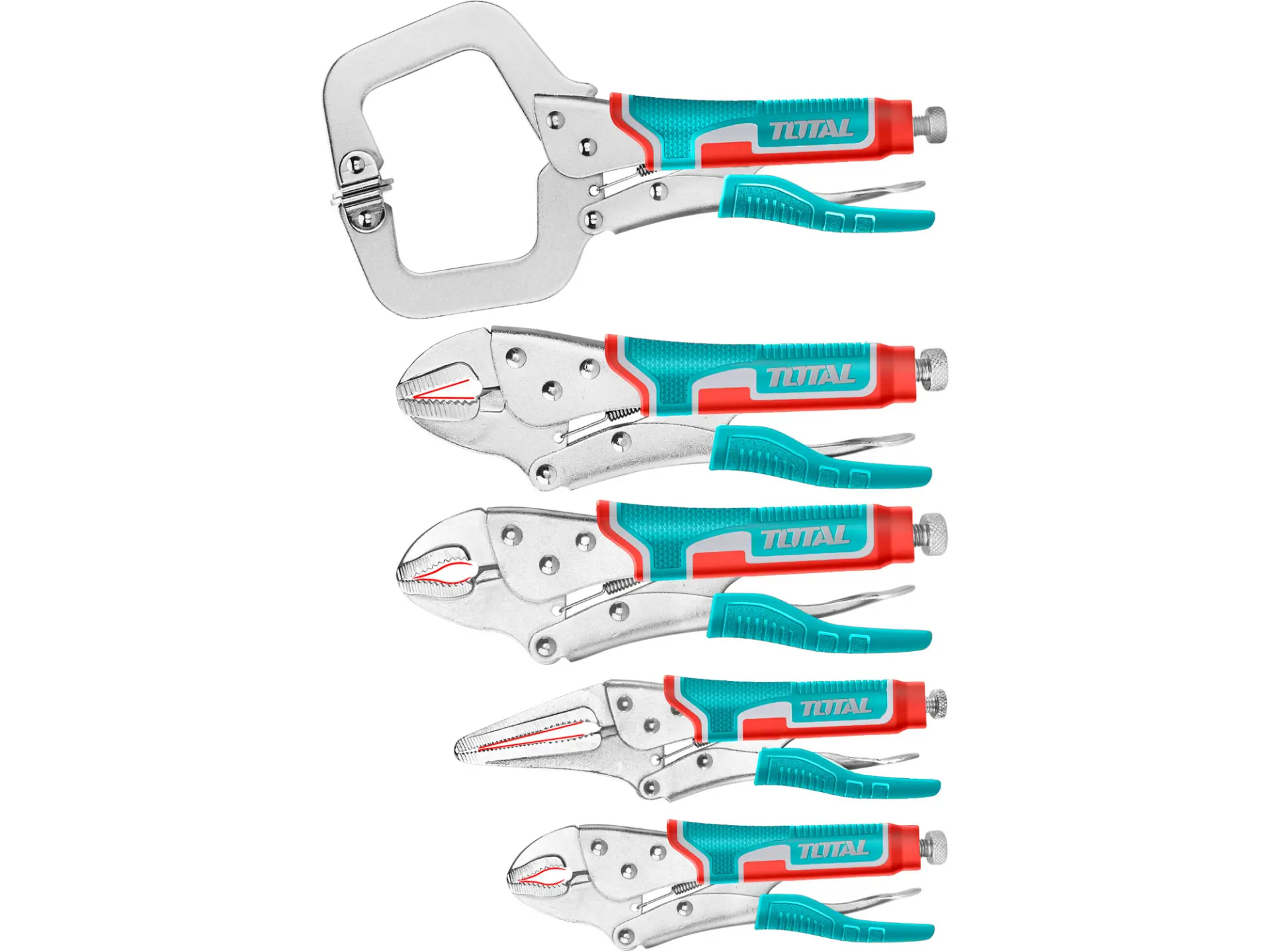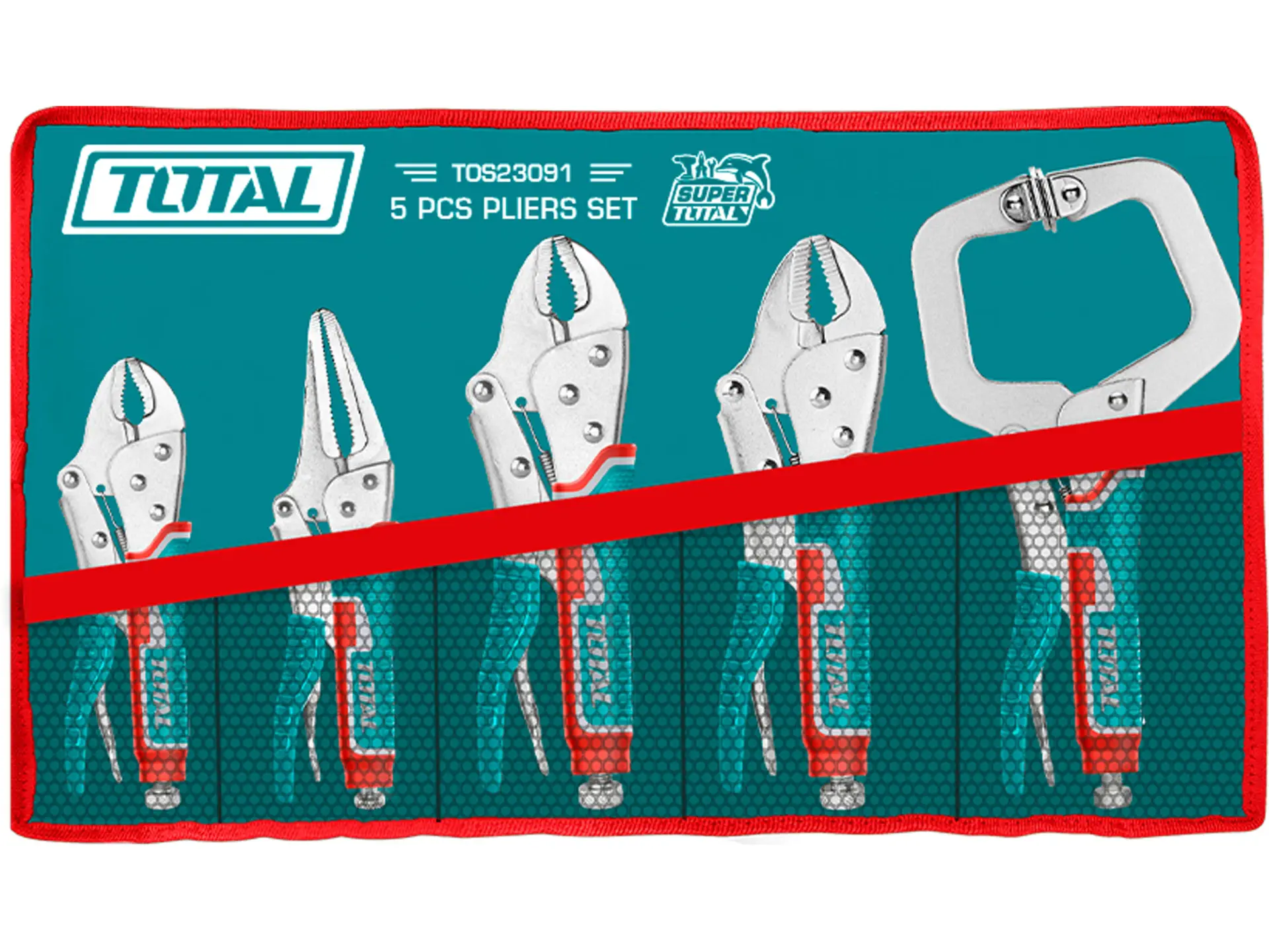 Sada rychloupínacích kleští je zabalena v rozkládacím obalu z PVC. Obal má 5 kapes, pro každé kleště jednu. Po zamotání obalu do ruličky je obal vybaven provázkem pro zavázání. Jednotlivé kleště jsou vybaveny sklolaminátovým krytím rukojetí, což usnadňuje úchop a práci s nůžkami. Sada obsahuje tyto typy kleští: 1 ks 180mm kleště se zahnutými čelistmi 1 ks 230mm kleště rychloupínací štípací s dlouhými čelistmi 1 ks 230mm kleště rychloupínací štípací se zahnutými čelistmi 1 ks 250mm kleště s přímými čelistmi 1 ks 280mm kleště rychloupínací C
