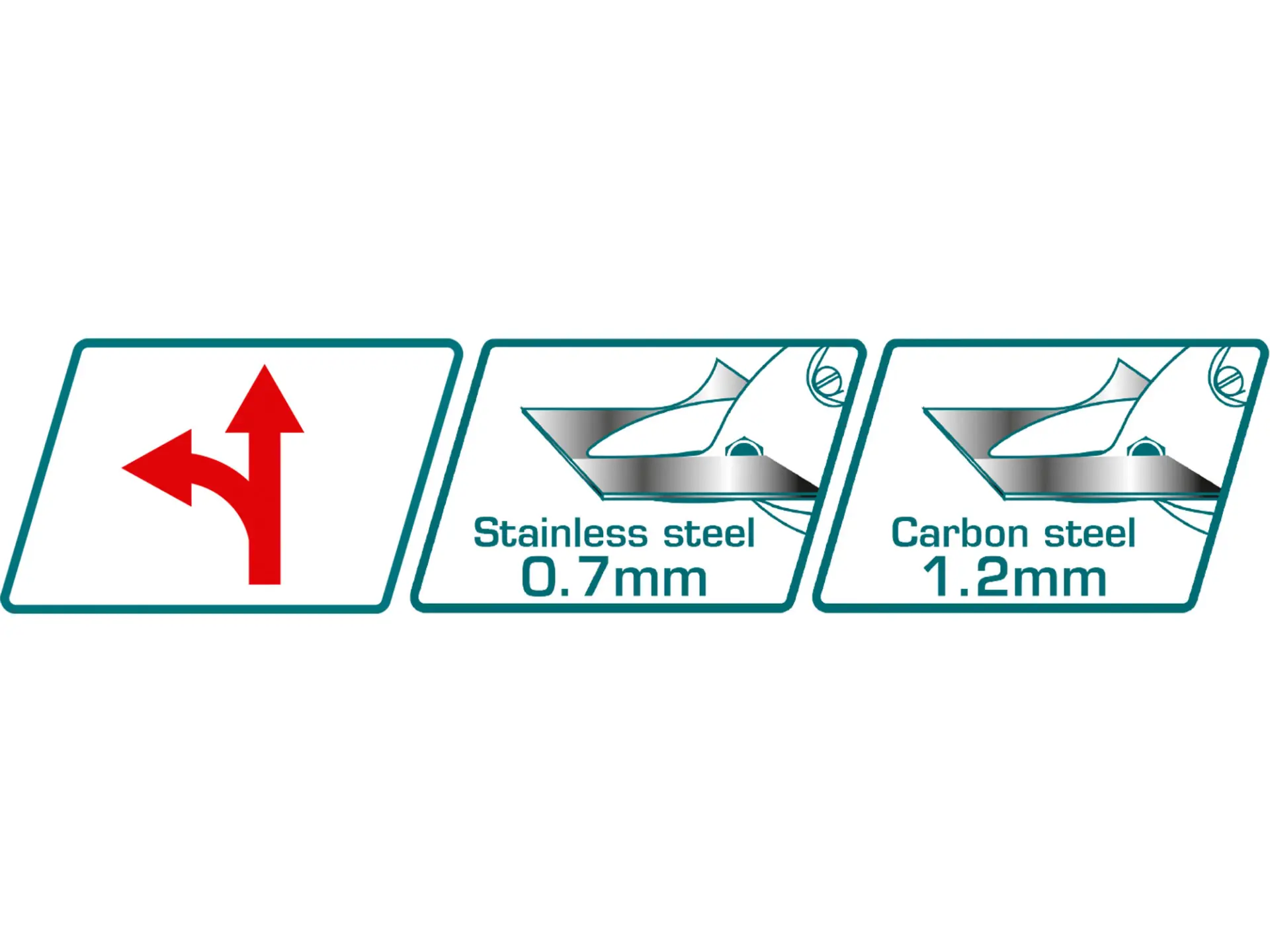 max. stříhací kapacita 1,2mm pro uhlíkovou ocel a 0,7mm pro nerezovou ocel