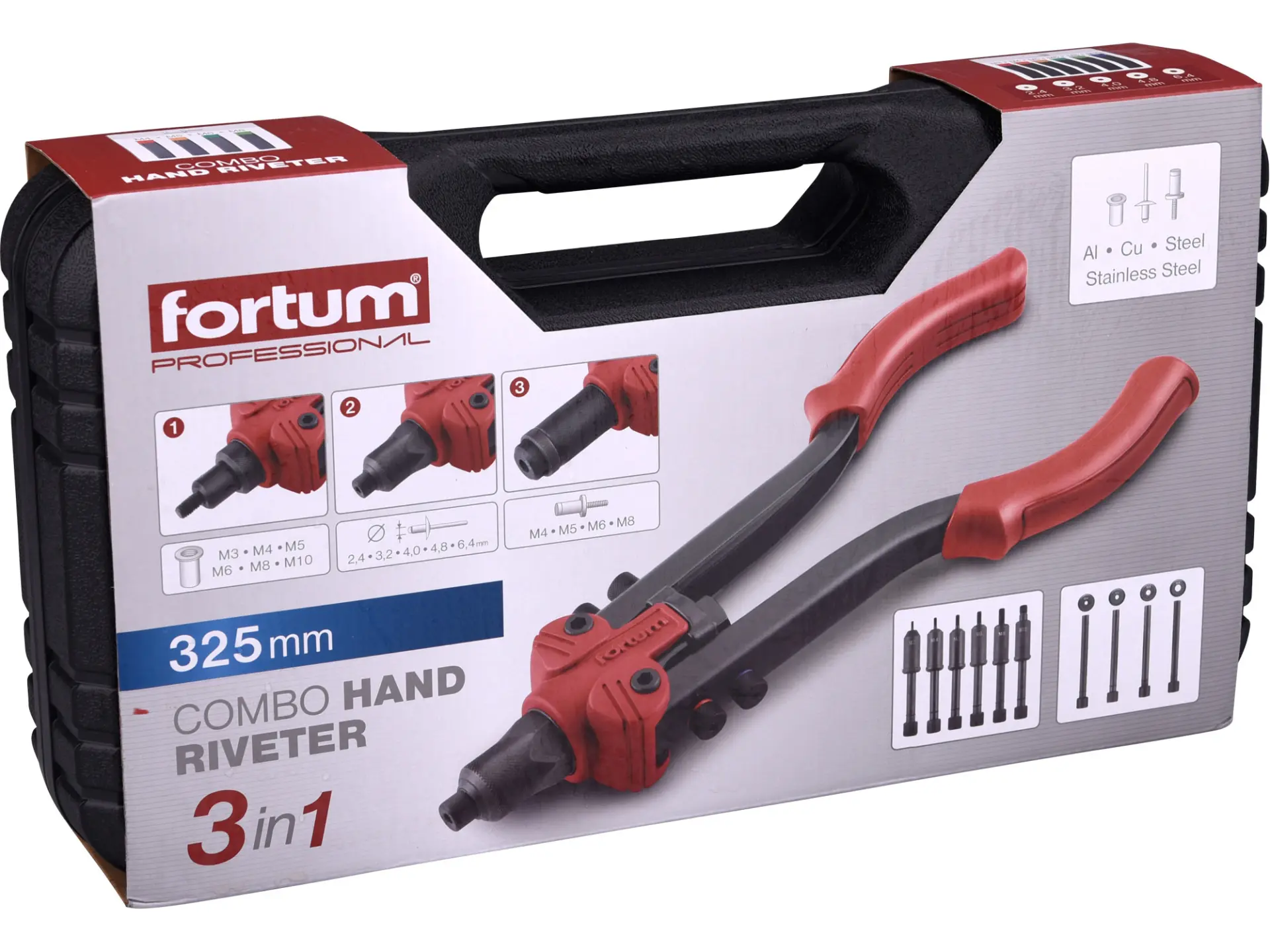 • kombinovaný model s třemi funkcemi (COMBO-3F) dodávaný v plastovém kufříku disponuje třemi funkcemi nýtování: nýtovacími maticemi, nýtovacími šrouby a také trhacími(slepými) nýty