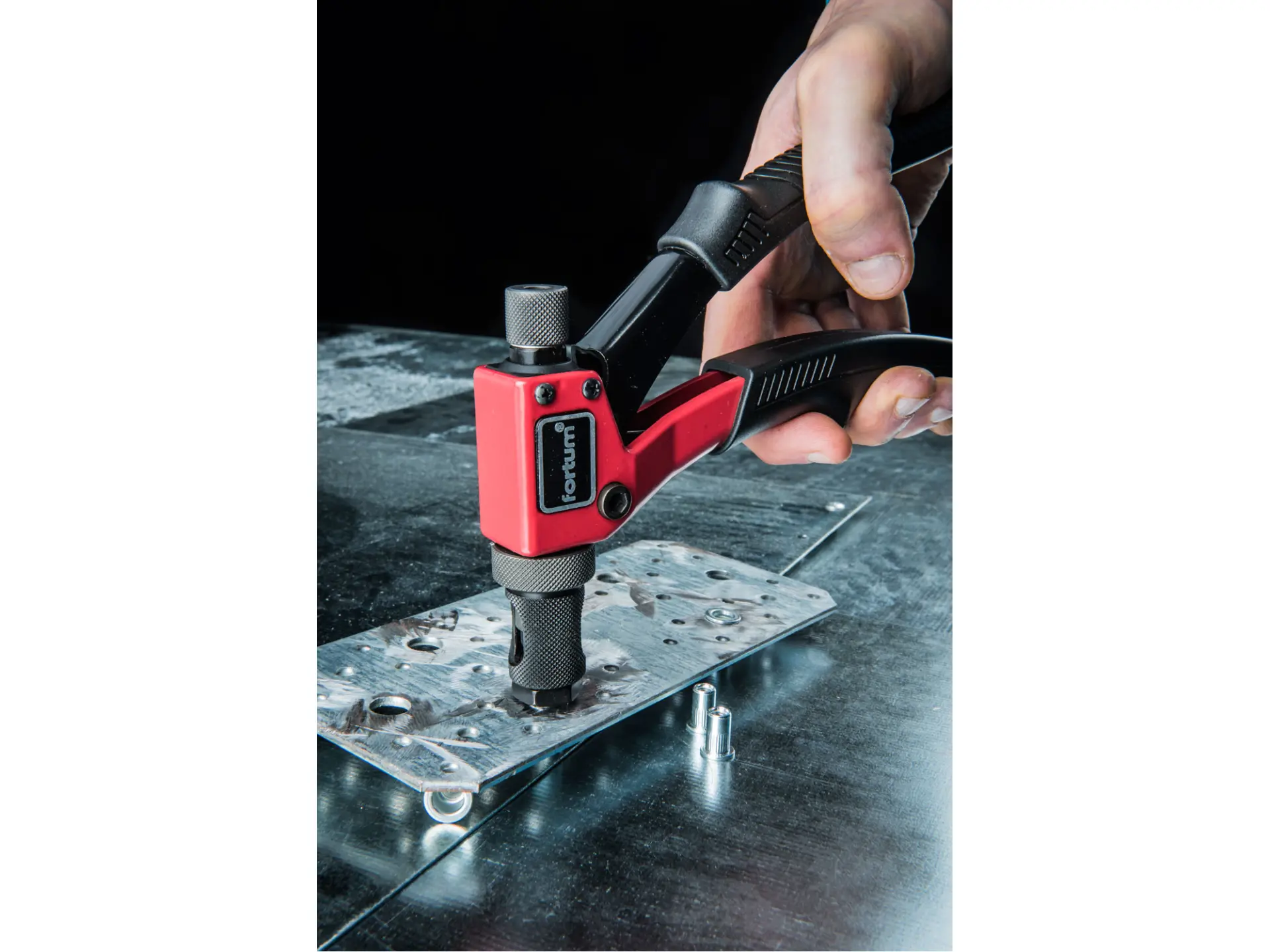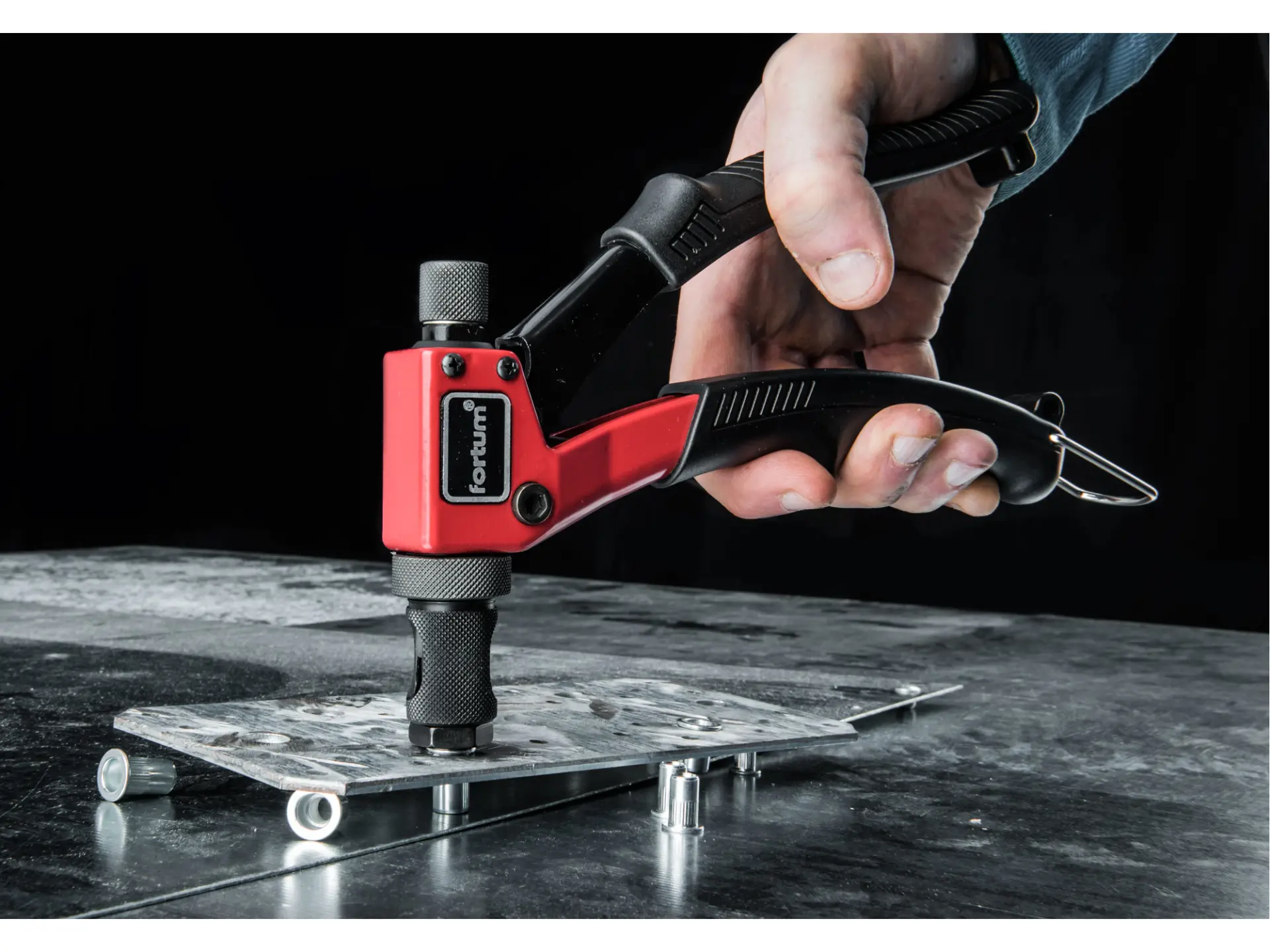 Unikátní nýtovací kleště Fortum obsahují množství konstrukčních patentů. Díky pákovým převodům se minimalizuje potřebná síla uživatele. S minimálním úsilím tak vytvoříte pevné odolné spoje, které nahradí šrouby, vruty, obyčejné nýty, pájení a svařování. Čelisti pro uvedené velikosti nýtovacích matic jsou součástí balení. Pomocí nýtovací matice v zanýtovaném spoji vytvoříte neporušený závit, na který můžete snadno připevňovat další komponenty.