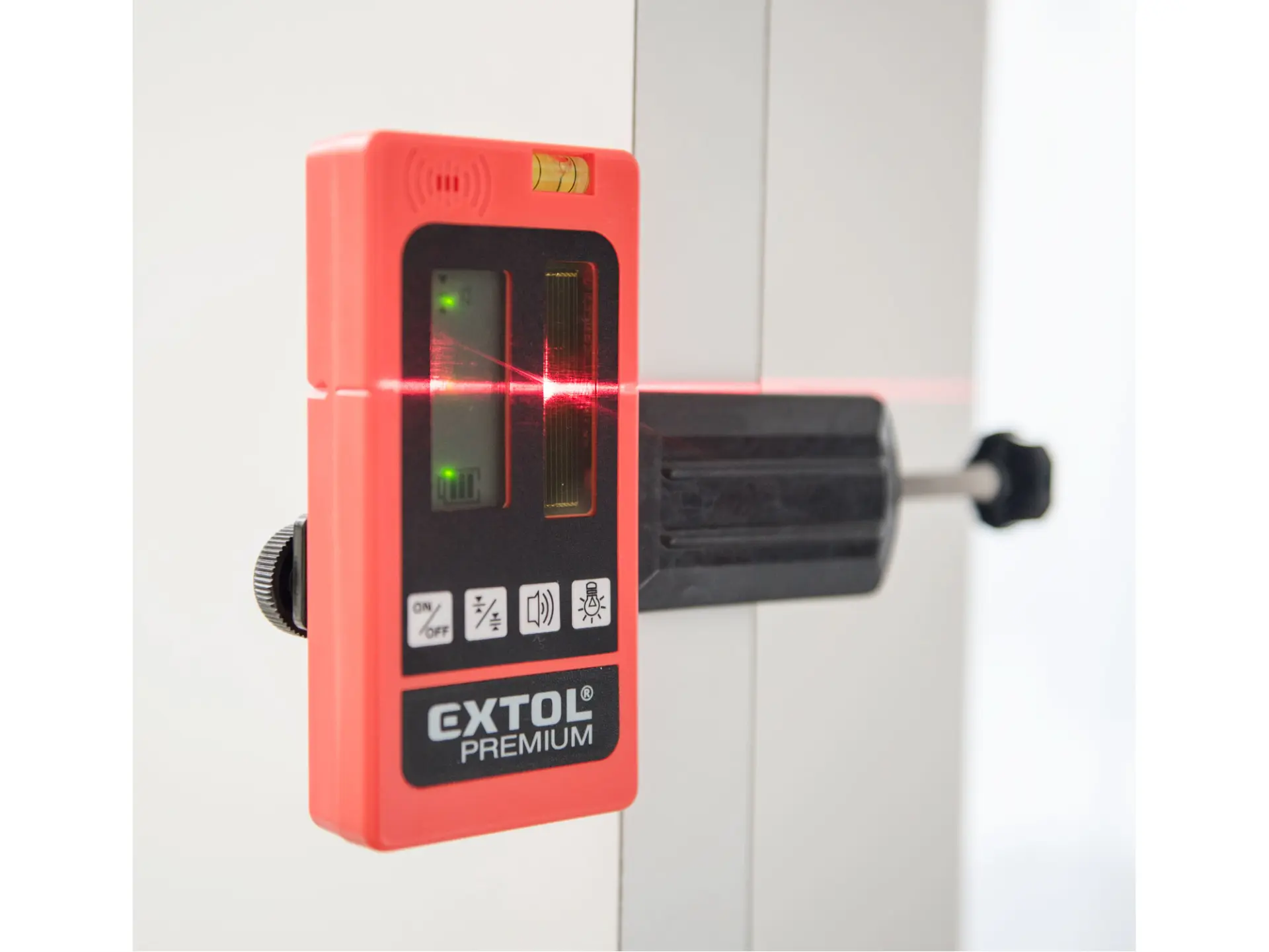 • příjímač detekuje jak červené, tak i zelené laserové paprsky s frekvenční charakteristikou 10kHz (+- 10%), za podmínky, že jsou vysílány laserovými přístroji v tzv. pulsním módu