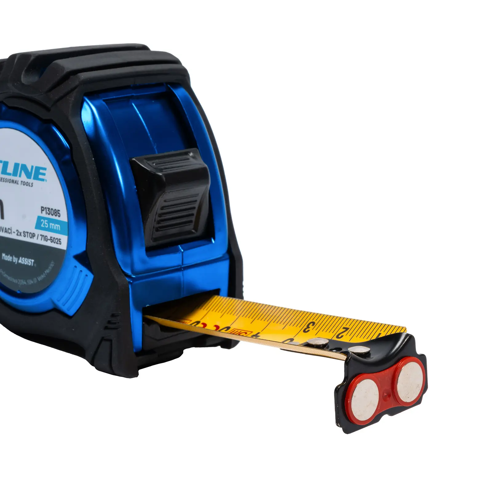 Svinovací metr s vysoce přesnou páskou. Díky použití výrobních certifikovaných tiskových strojů tato páska vyhovuje certifikátům MID (NWML 0126-17) třída II a JIS třída I. Páska z uhlíkové oceli je silnější než u jiných metrů, což přímo ovlivňuje její životnost. Další dva šrouby na pouzdře pro ještě pevnější a kvalitnější ochranu pásky. Otřesuvzdorné jádro z ABS materiálu. Metry prochází kontrolami kvality, např. pády z výšky apod. Páska metru je potažená nylonovým pláštěm odolným proti škrábancům. ABS pouzdro, pogumovaný obal a chromovaný pohyblivý háček připevněný 3 nýty.