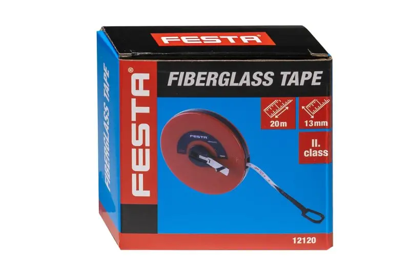 Kvalitní a přesné sklolaminátové pásmo, páska zakončená očkem s gumovou ochranou proti vytrhnutí, CE certifikát - vhodné ke kalibraci, sklopná navíjecí ručka, poutko.
