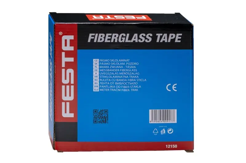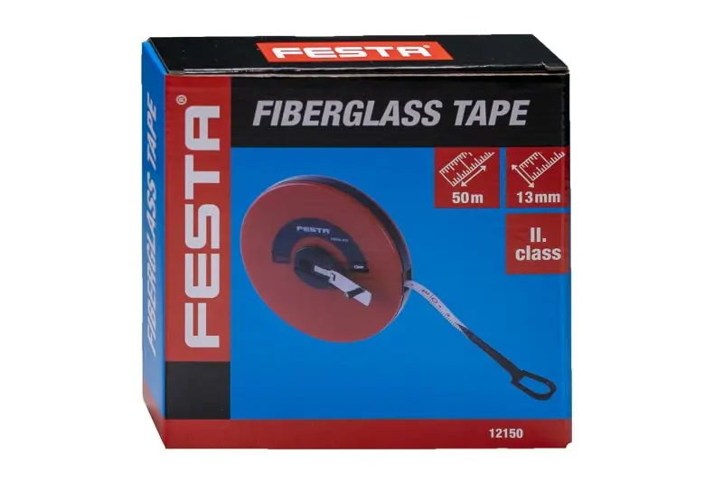 Kvalitní a přesné sklolaminátové pásmo, páska zakončená očkem s gumovou ochranou proti vytrhnutí, CE certifikát - vhodné ke kalibraci, sklopná navíjecí ručka, poutko.