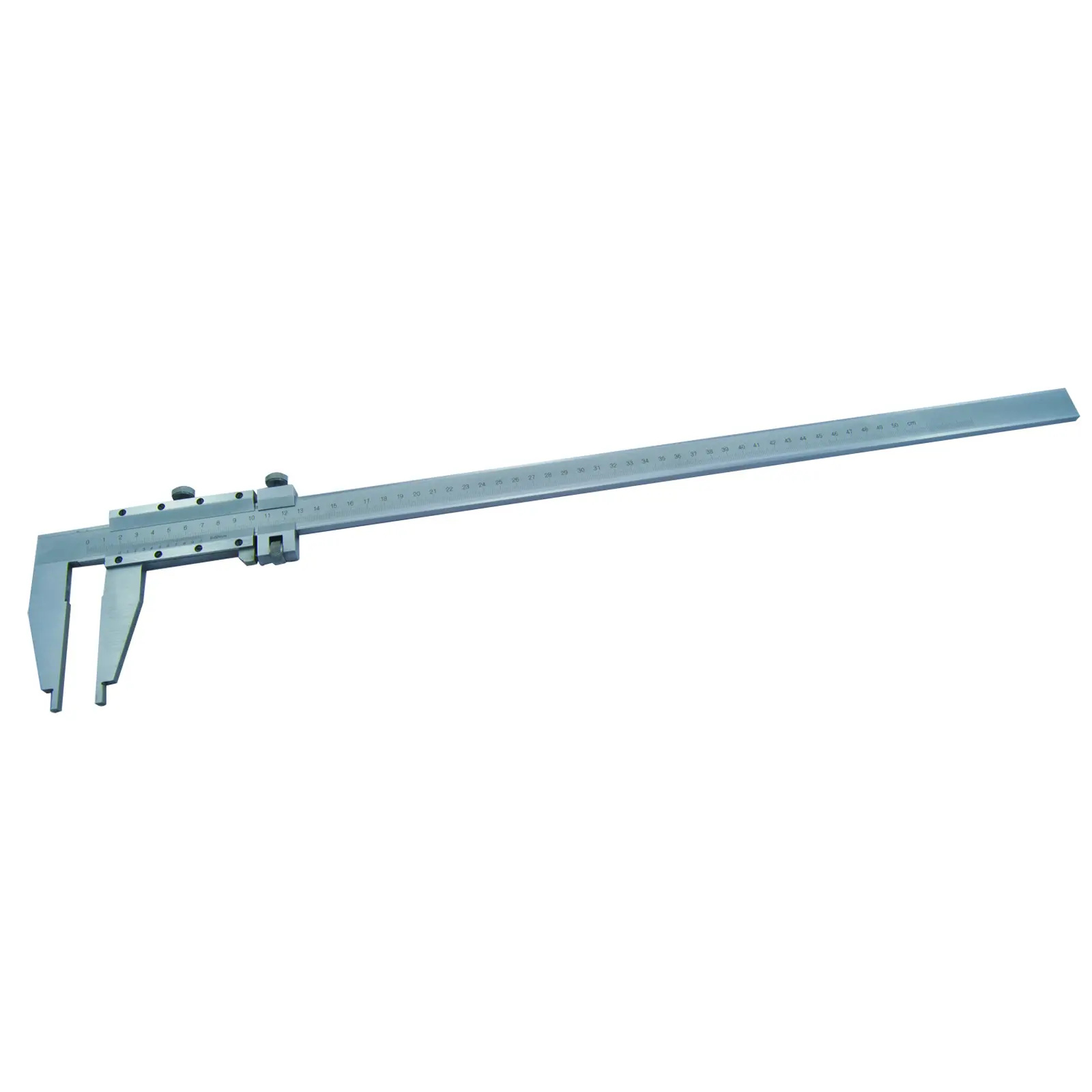 Posuvné měřírko s nastavitelnou délkou 0-1000 mm má jemné stavění se šroubovací noniusem. Nemá hloubkoměr.