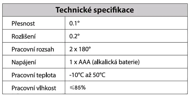 • kompaktní přístroj nahrazující vodováhu, uhloměr, sklonoměr v jednom