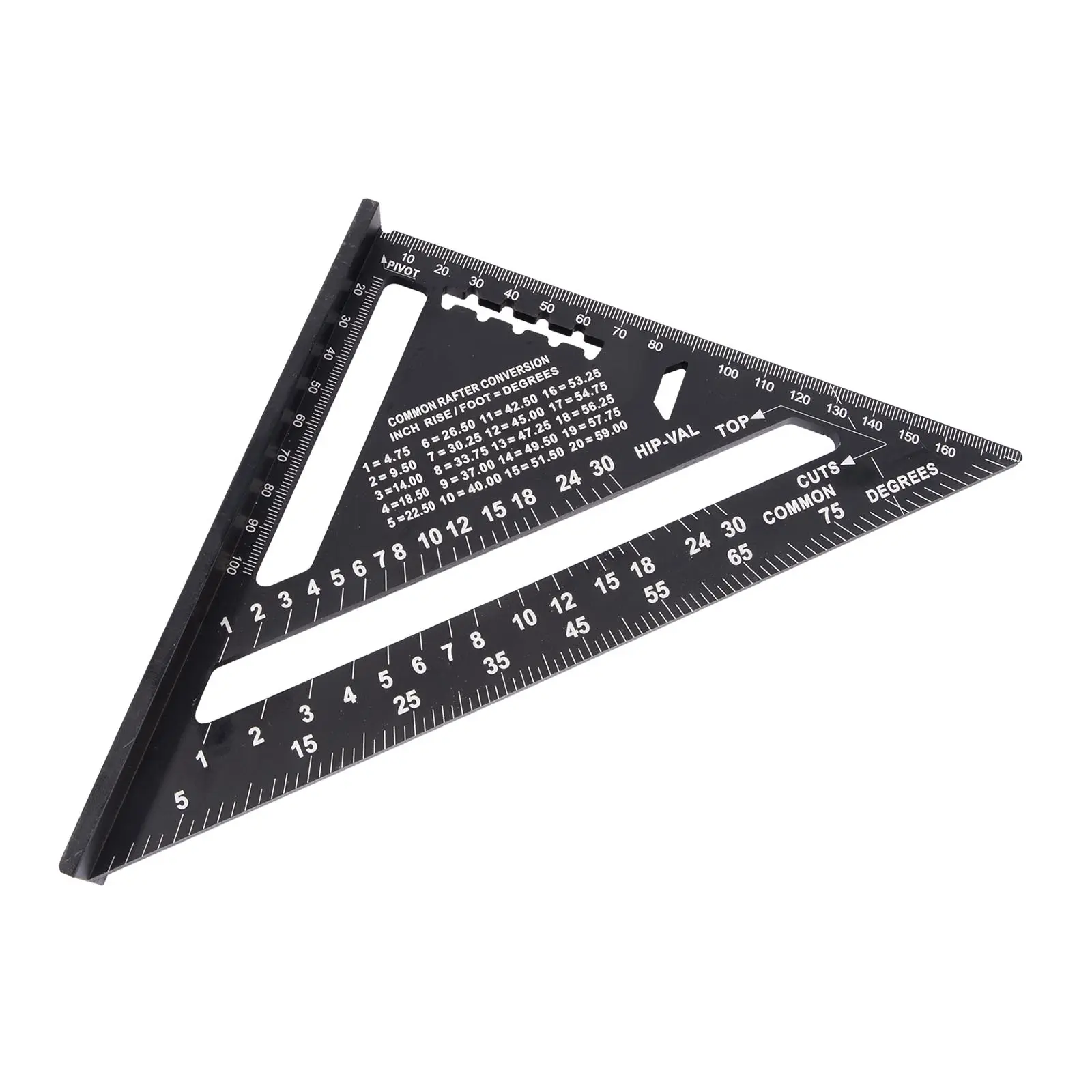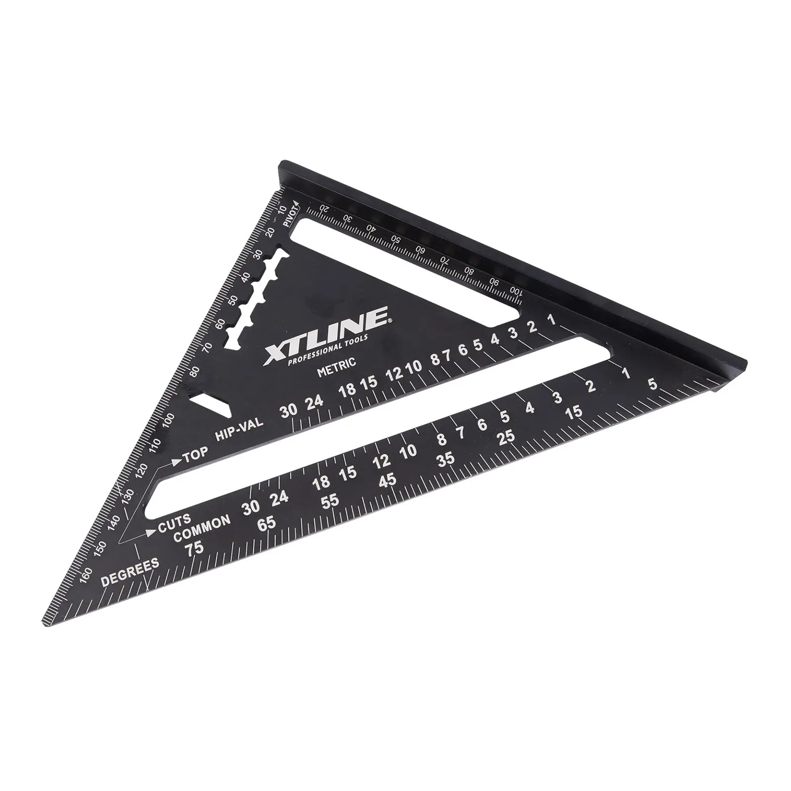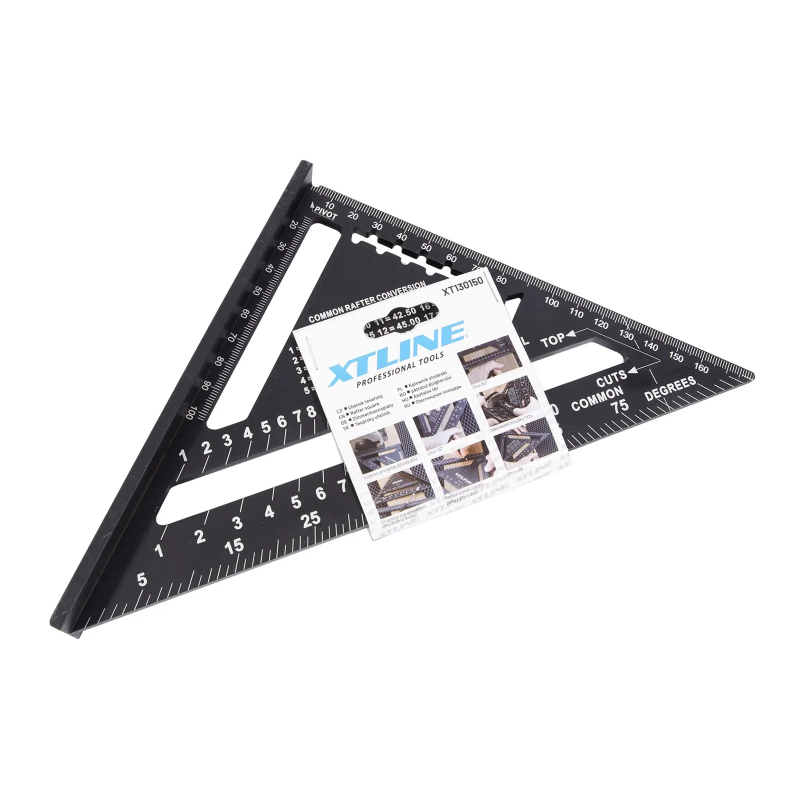 Tesařský úhelník, známý též jako „speed square“, je multifunkční pomůckou pro mnoho řemesel. Kvalitní slitina hliníku a přesně frézované hrany zajišťují maximální přesnost a odolnost. Úhelník umožňuje rychle a přesně vytyčit úhly 90° a 45°. Díky robustní konstrukci jej lze použít jako praktické vodítko pro kotoučovou pilu při řezání příčných i šikmých řezů. Víceúčelovost úhelníku spočívá také v tom, že můžete využít vnitřních zářezů na stupnici pro tužku nebo rýsovací nůž a použít tak úhelník jako rejsek. Další vlastností je úhloměr pro určení nebo vytyčení běžně používaných úhlů. Nechybí stupnice pro vyměření běžných, nárožních a úžlabních krokví pro tesaře. Úhelník by díky své všestrannosti a praktičnosti neměl chybět ve výbavě žádného kutila ani řemeslníka.