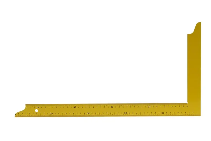 Tesařský úhelník z jednoho kusu tvrzené pružinové oceli, stupnice v mm - přesnost 0,5mm/m.