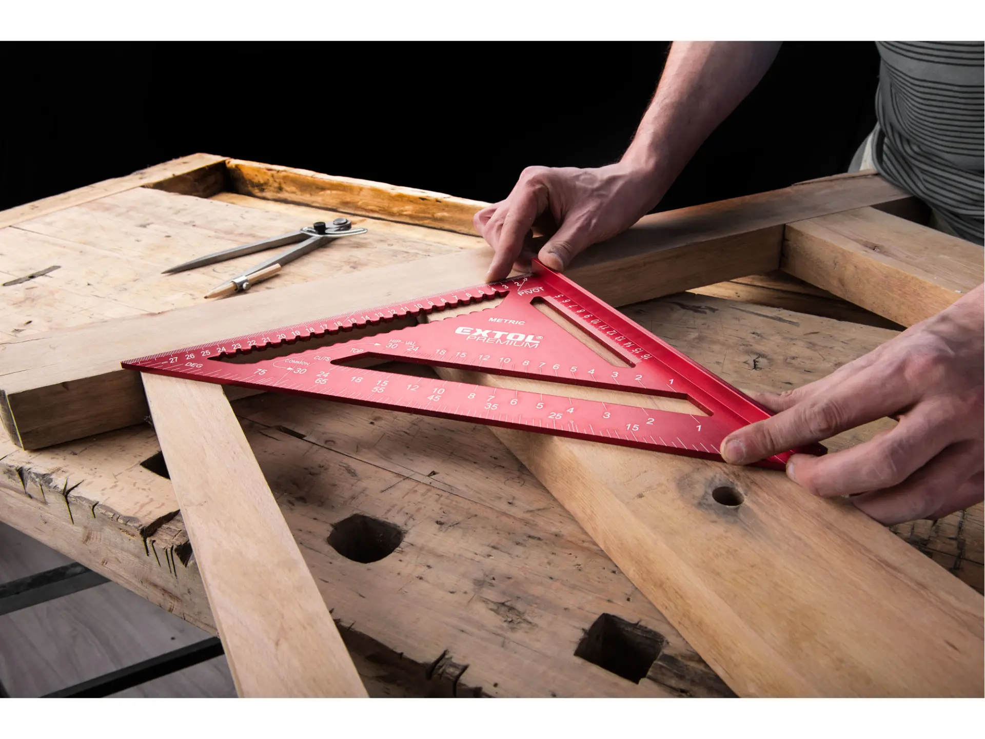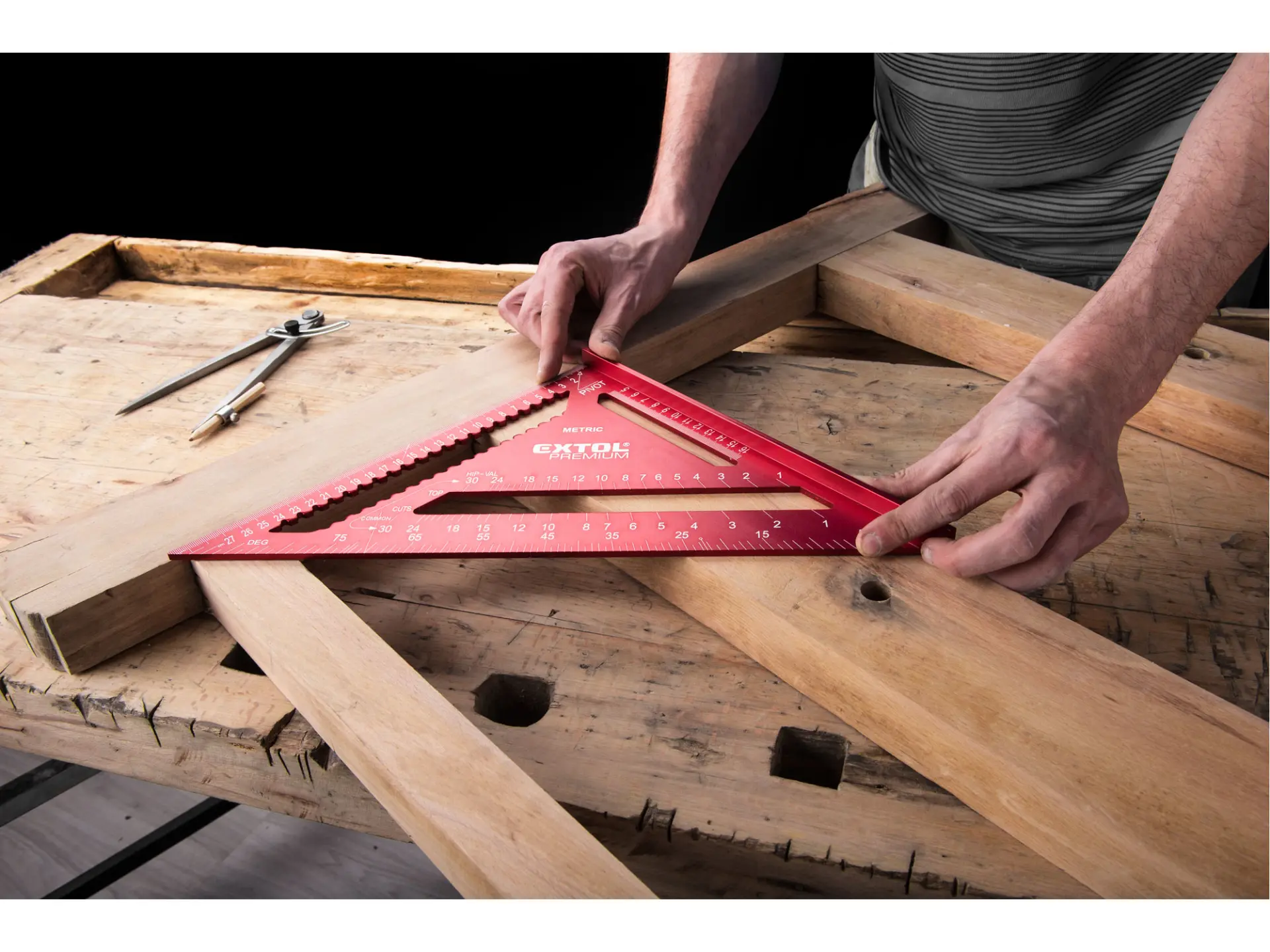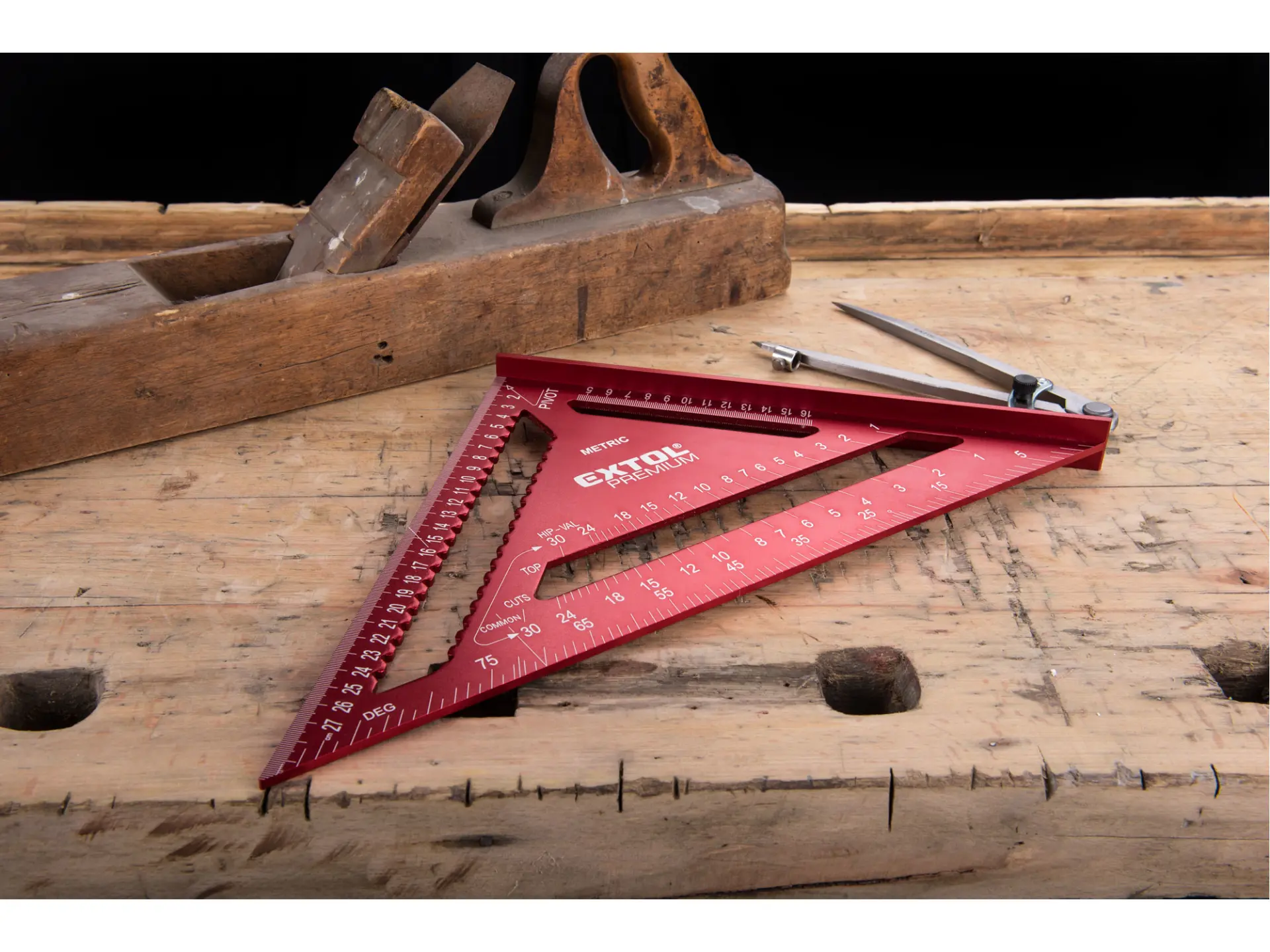 • lehký a zároveň pevný úhelník, do kterého jsou všechny stupnice zaznačeny laserováním a proto jsou vysoce odolné proti otěru a opotřebení