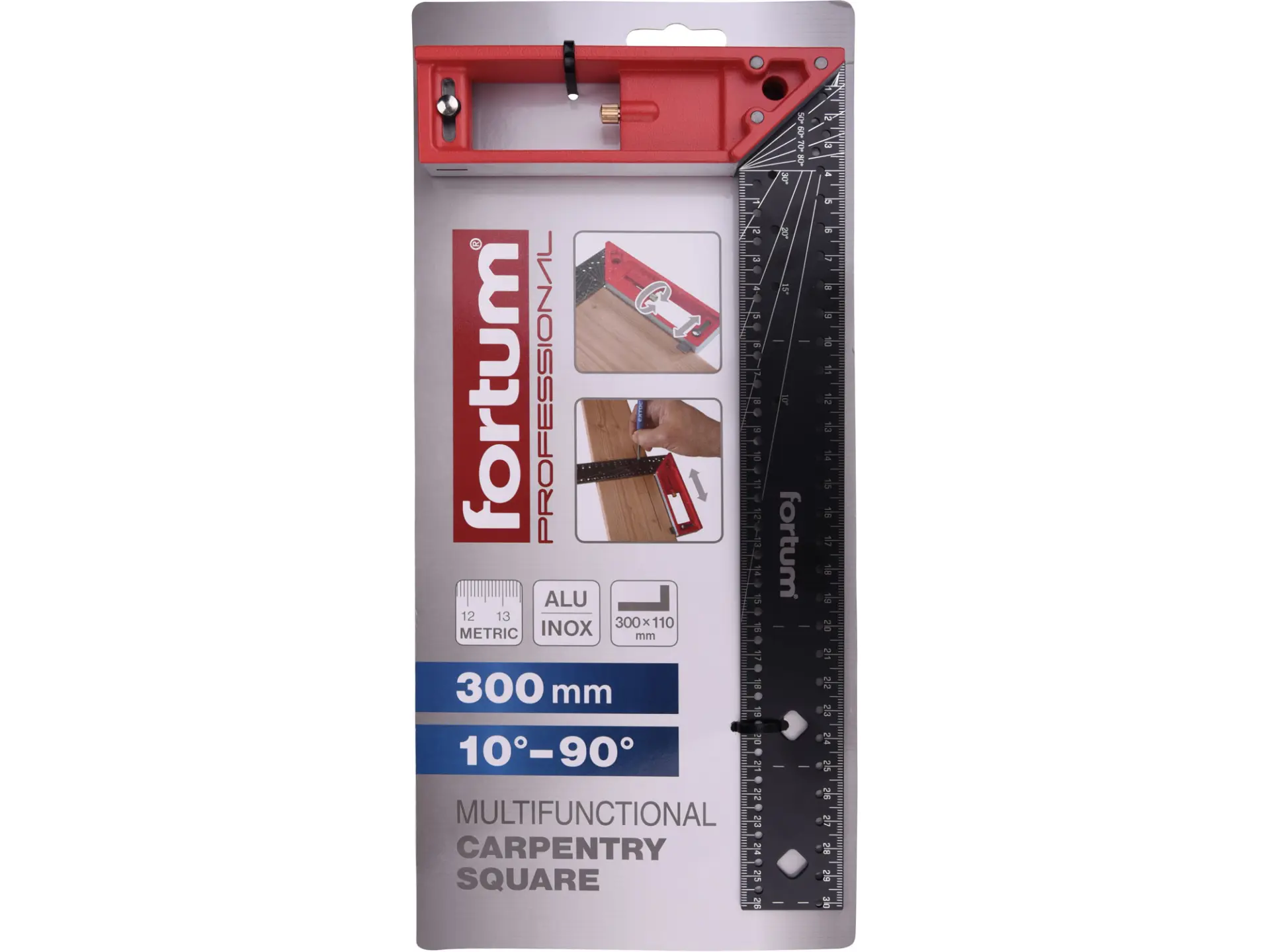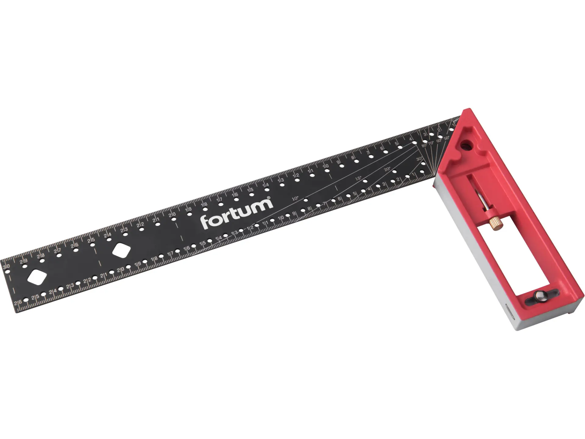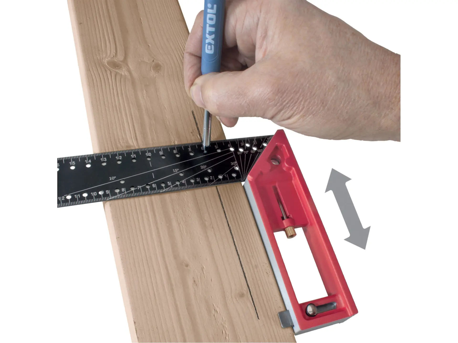 • celokovový úhelník (kombinace hliníku a oceli) s integrovanou rýsovací jehlou, výsuvným dorazem s užitečnými značkami, výřezy, úhly atd.; všechny stupnice a značky jsou do úhelníku vylaserovány a jsou tak vysoce odolné proti otěru a opotřebení