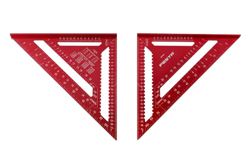 • stupnice a speciální výřezy, naznačené úhly pro široký rozsah použití, zaměření, značení a práce se dřevem, kovy, plasty apod.