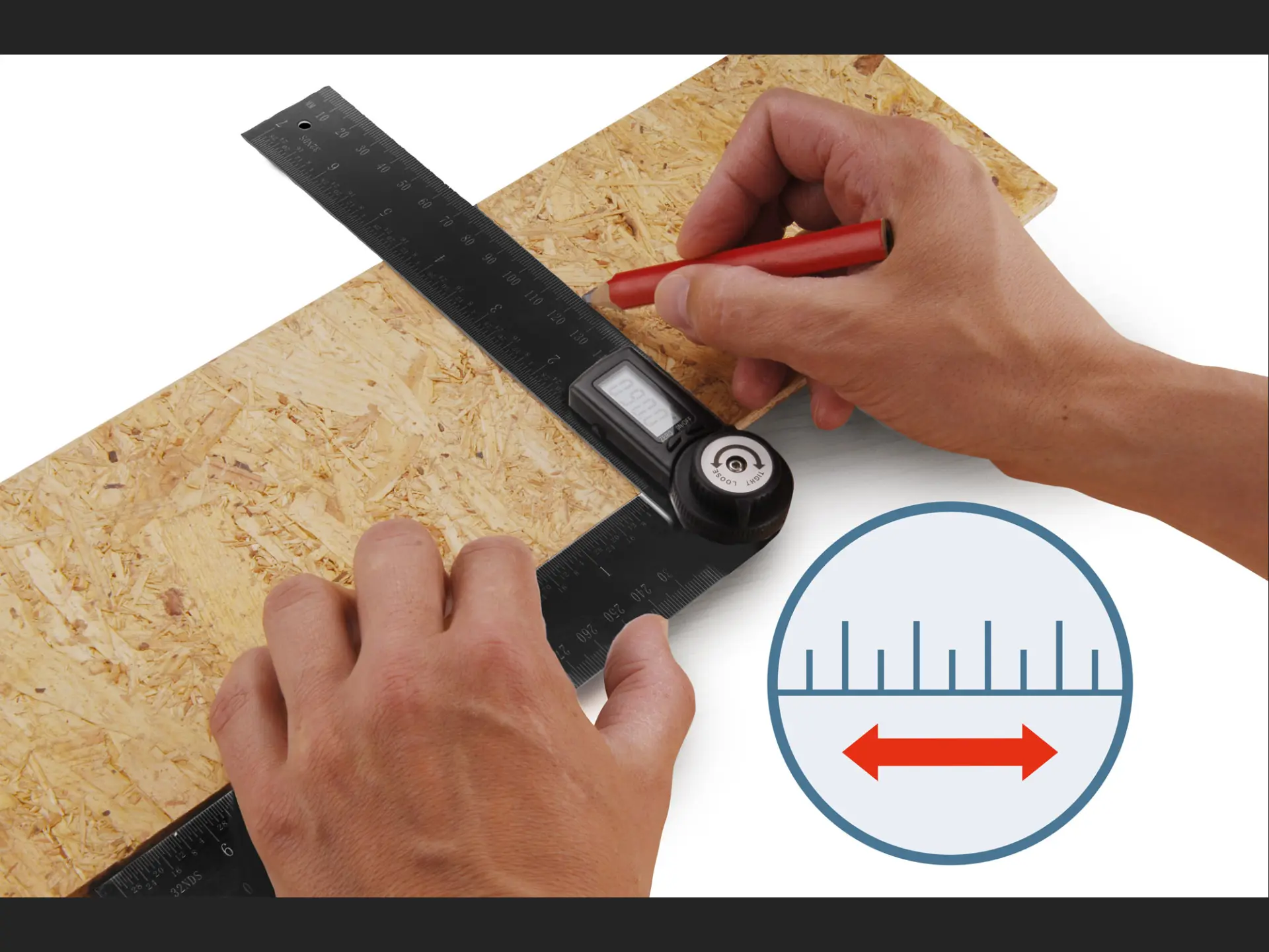 s pravítkem, rozsah měření 0°-360°, přesnost ±0,3°, rozlišení 0,1°, pravítko 400mmx35mm, LCD displej, baterie 3V typ CR2032, možnost zajištění v určitém úhlu, použití k měření úhlů nebo jako pravítko