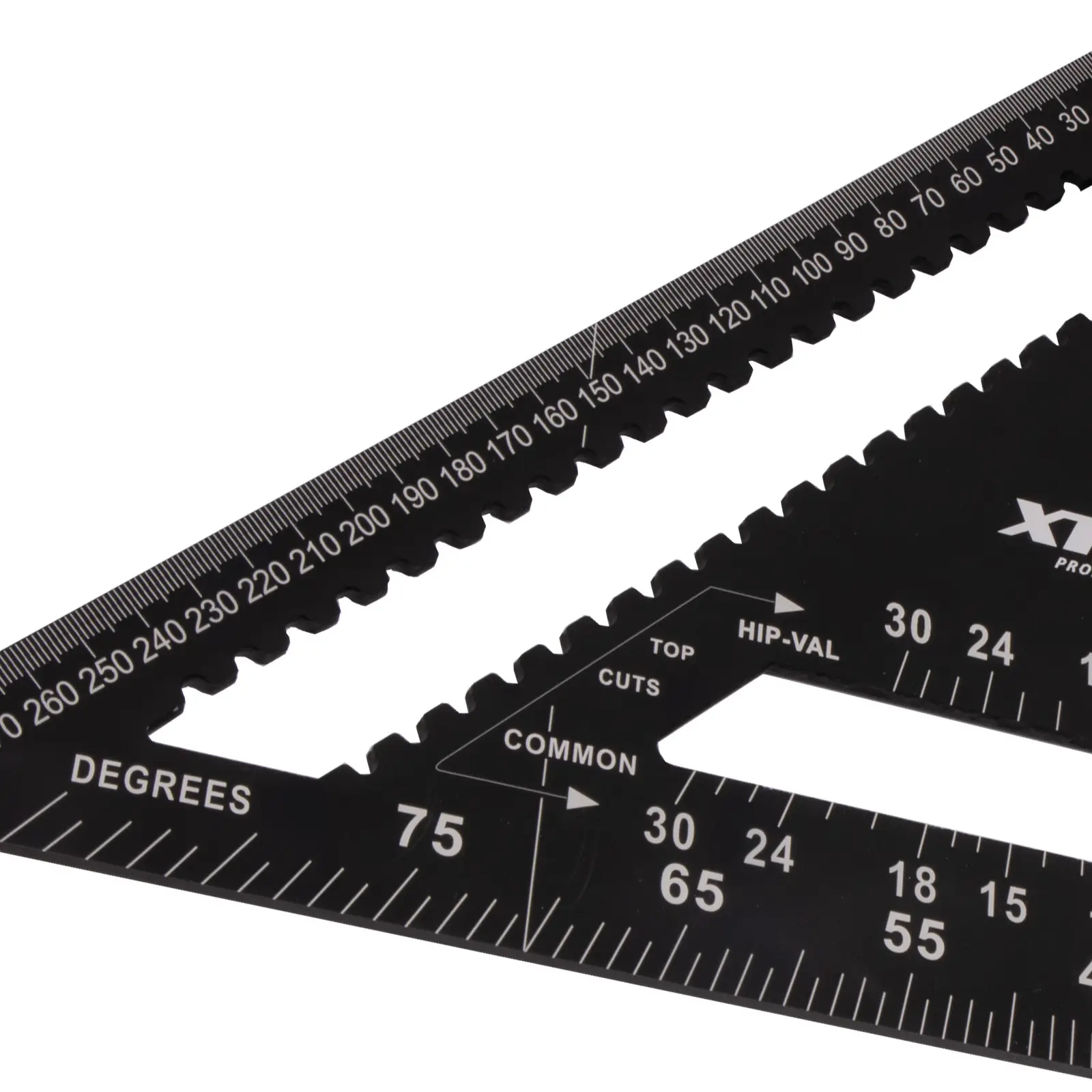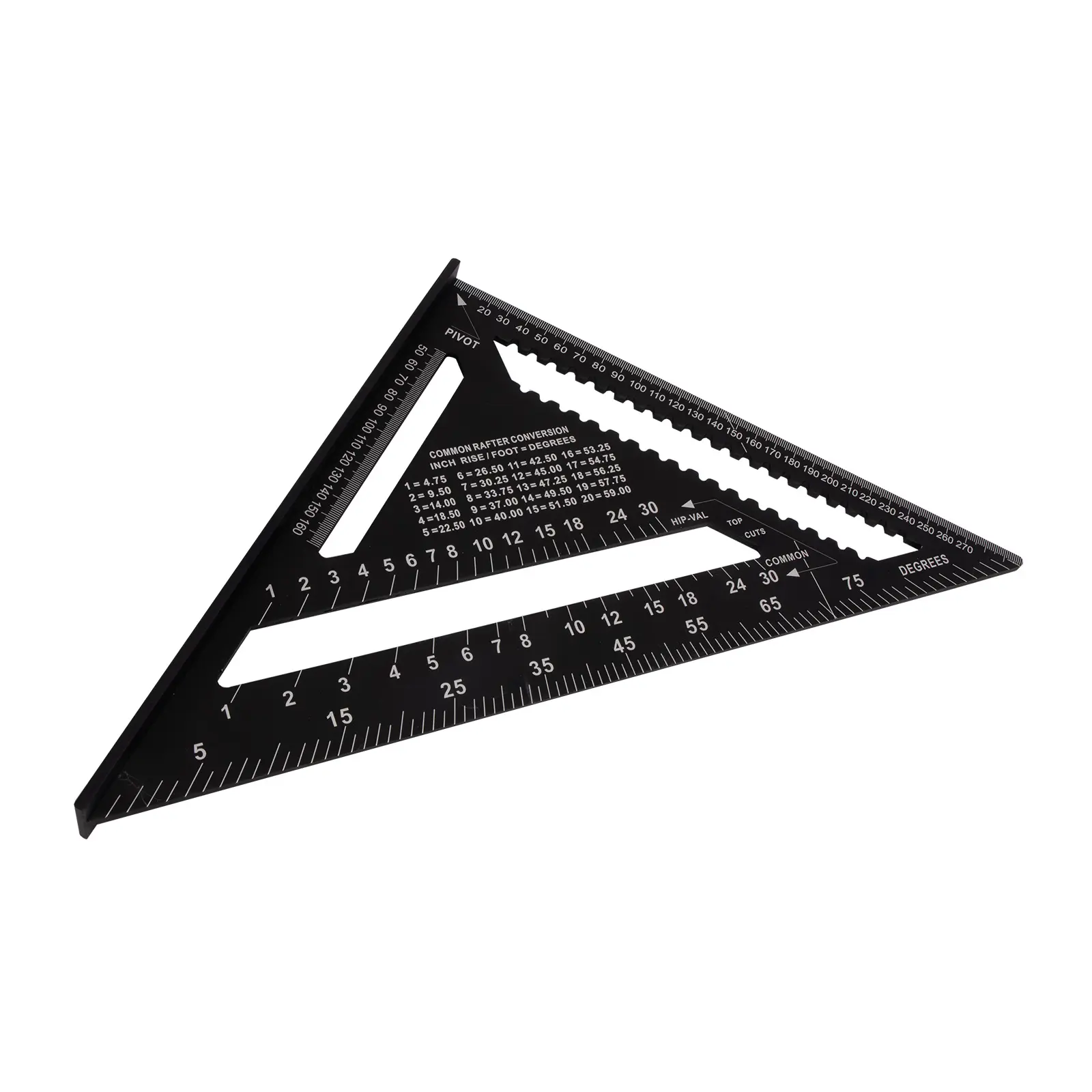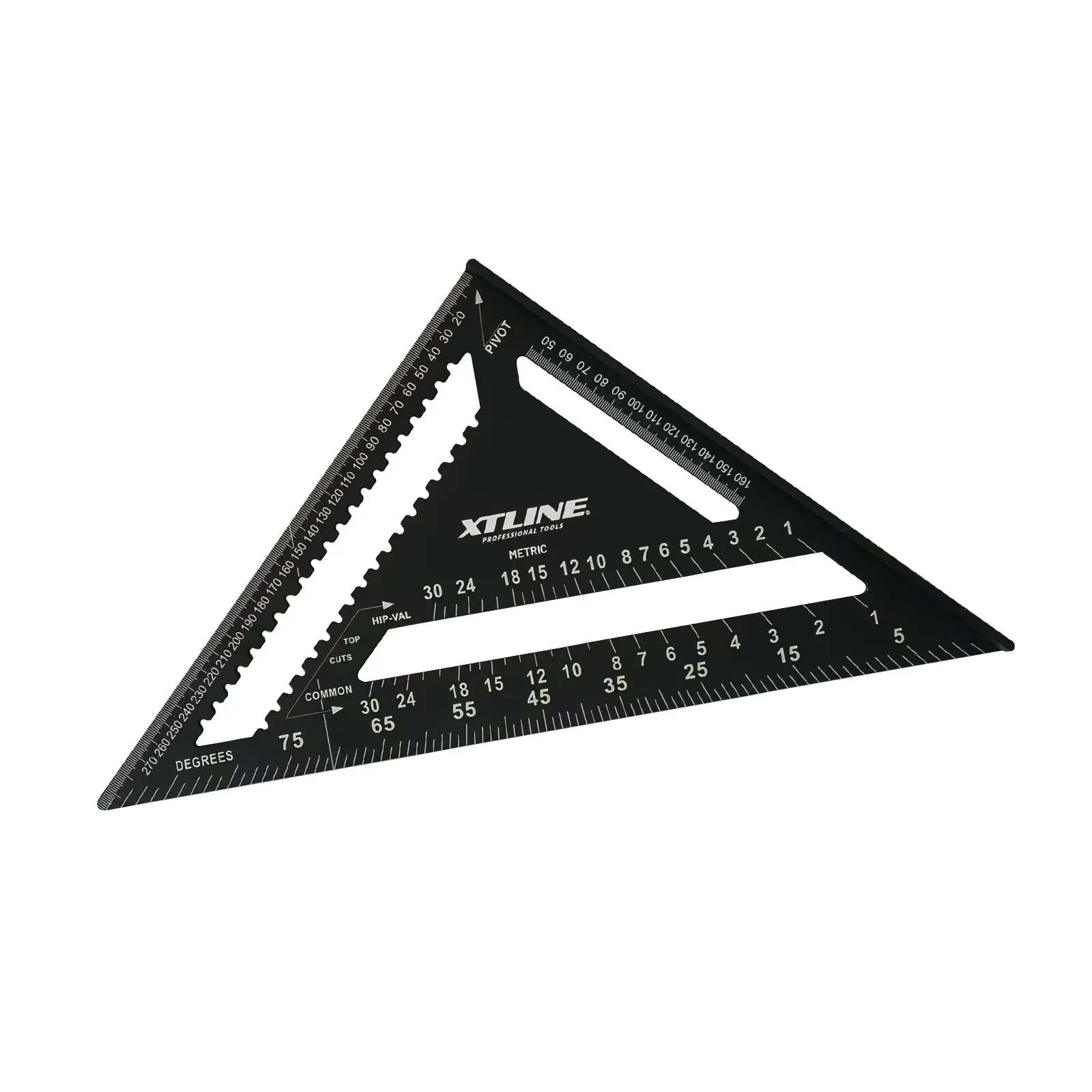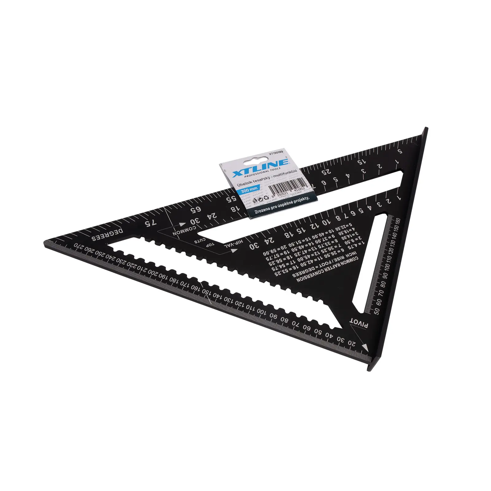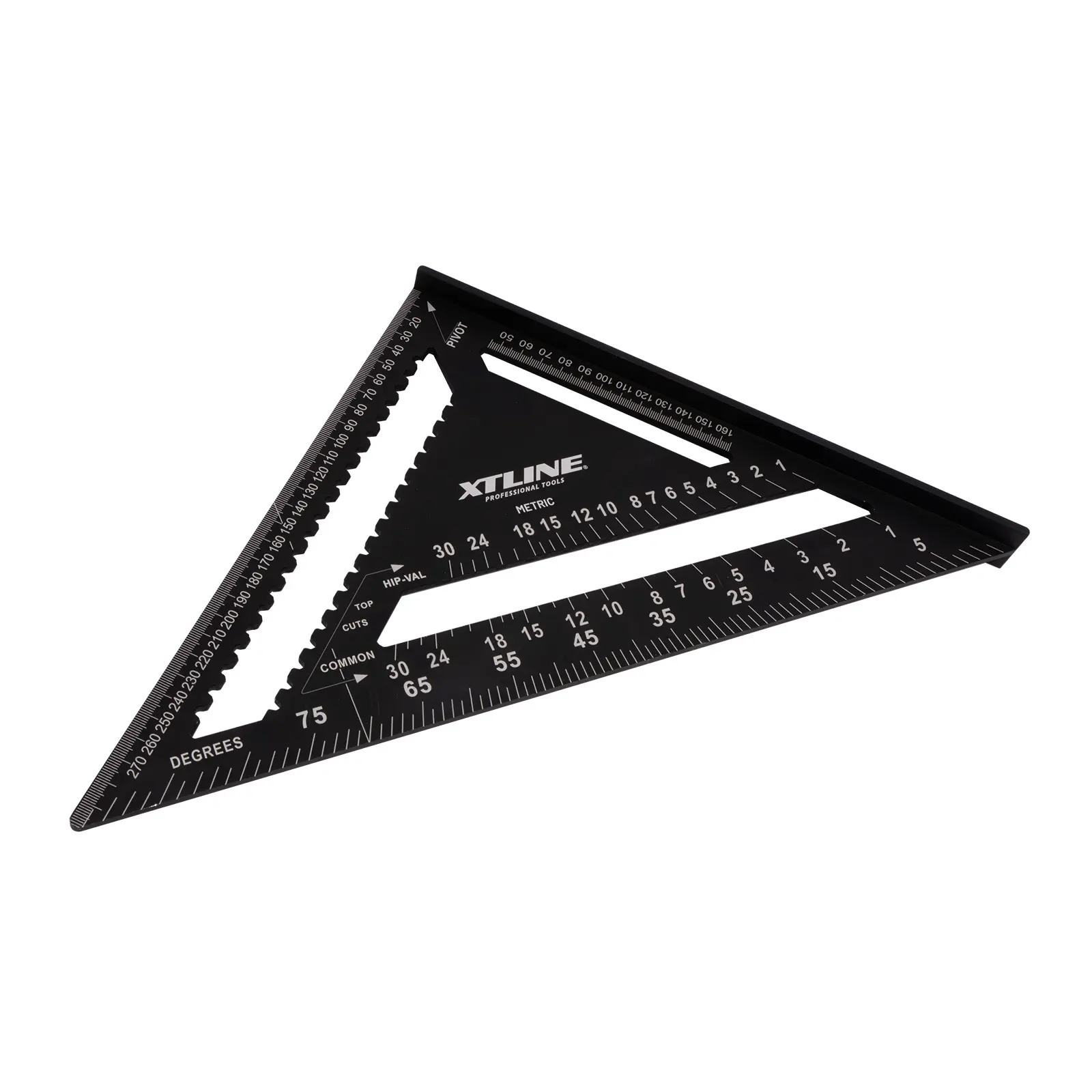 Tesařský úhelník, známý též jako „speed square“, je multifunkční pomůckou pro mnoho řemesel. Kvalitní slitina hliníku a přesně frézované hrany zajišťují maximální přesnost a odolnost. Úhelník umožňuje rychle a přesně vytyčit úhly 90° a 45°. Díky robustní konstrukci jej lze použít jako praktické vodítko pro kotoučovou pilu při řezání příčných i šikmých řezů. Víceúčelovost úhelníku spočívá také v tom, že můžete využít vnitřních zářezů na stupnici pro tužku nebo rýsovací nůž a použít tak úhelník jako rejsek. Další vlastností je úhloměr pro určení nebo vytyčení běžně používaných úhlů. Nechybí stupnice pro vyměření běžných, nárožních a úžlabních krokví pro tesaře. Úhelník by díky své všestrannosti a praktičnosti neměl chybět ve výbavě žádného kutila ani řemeslníka.