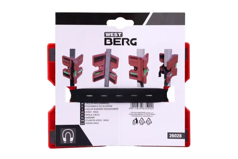 • vodováha díky třem libelám umožňuje srovnat sloupek / trám / nosník ve všech třech rovinách