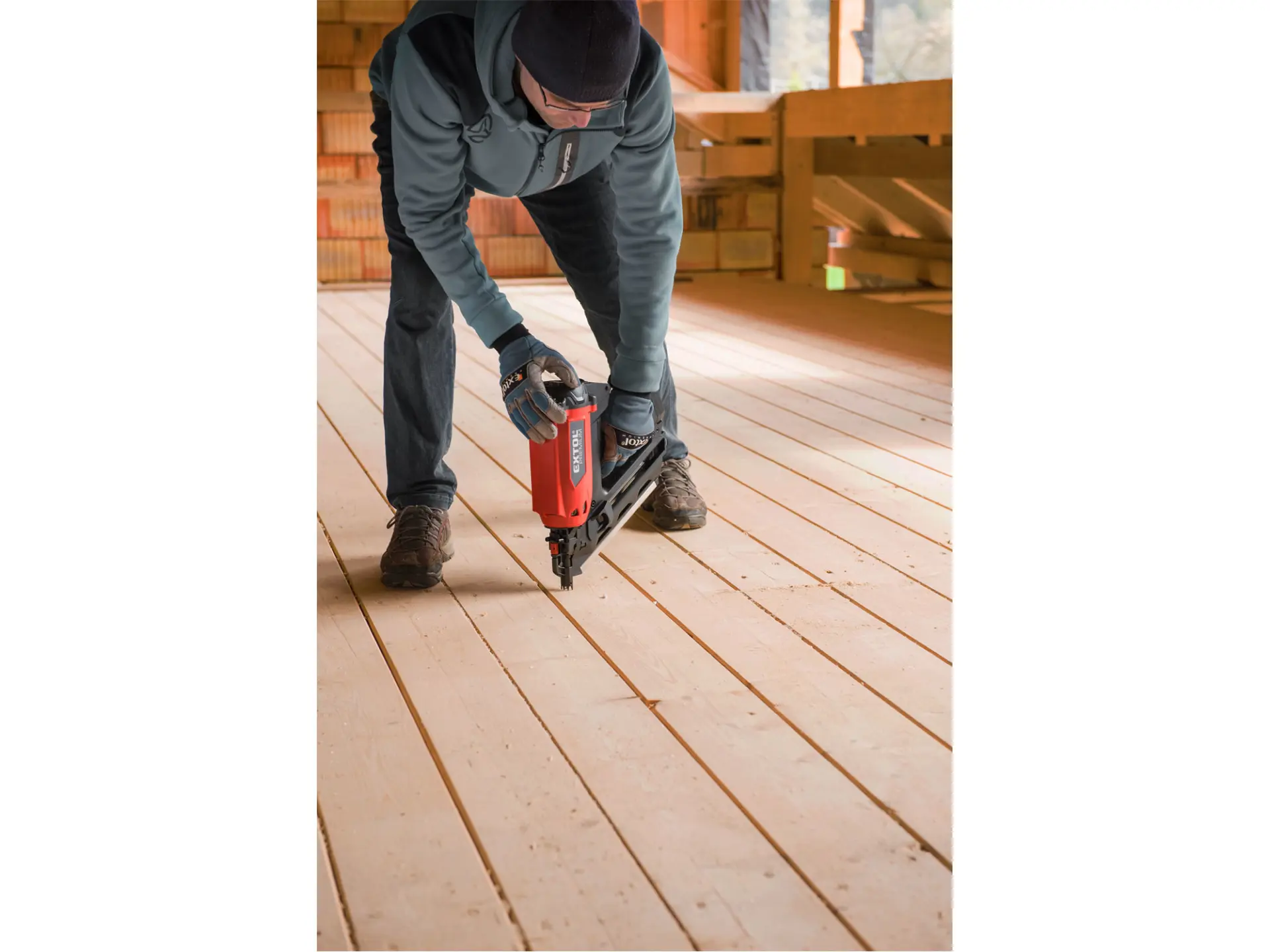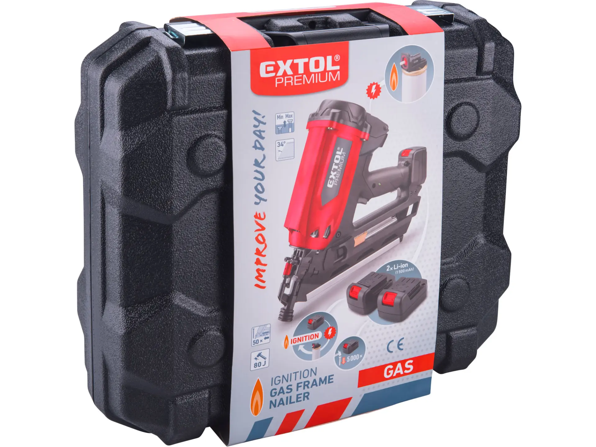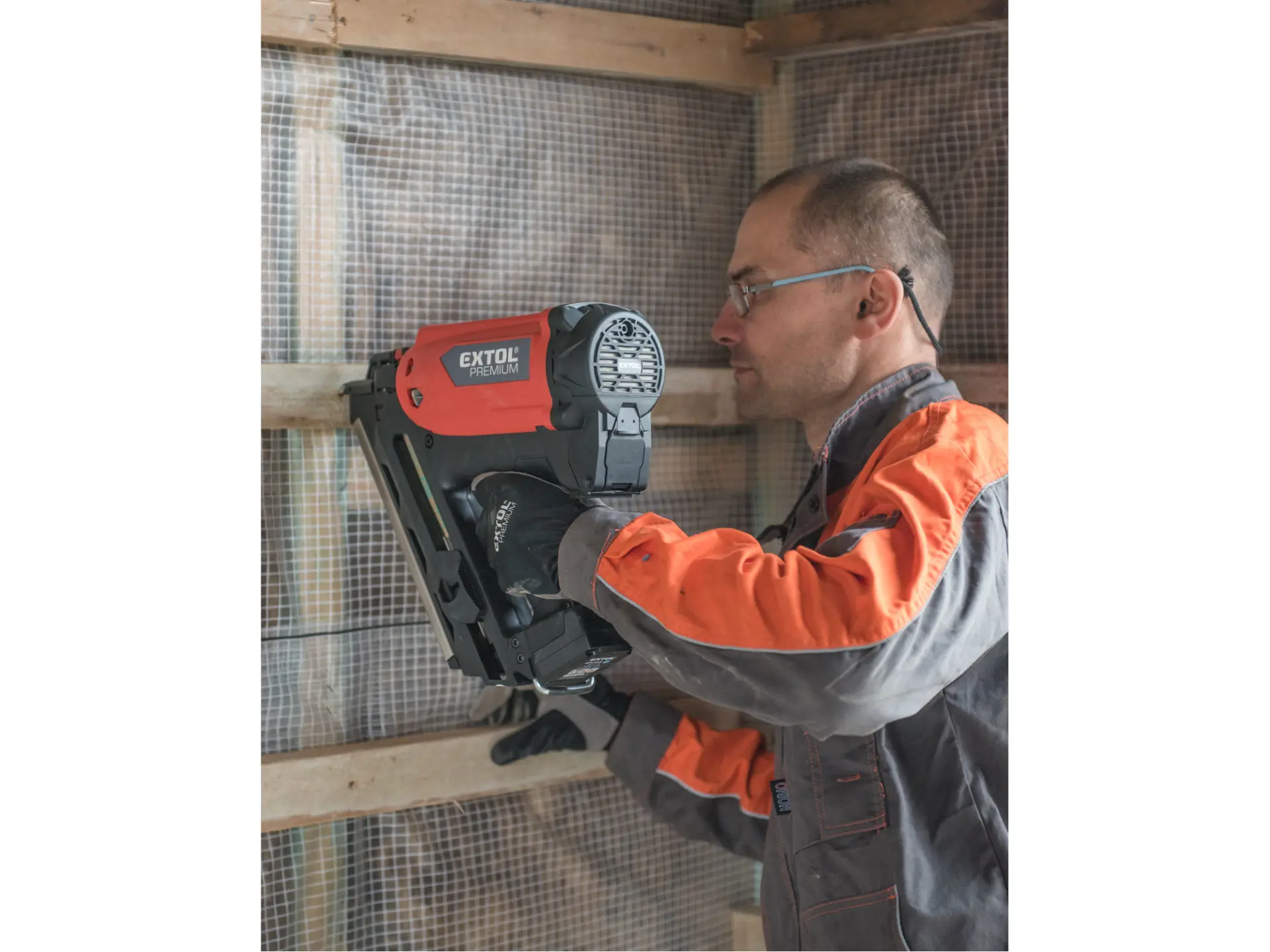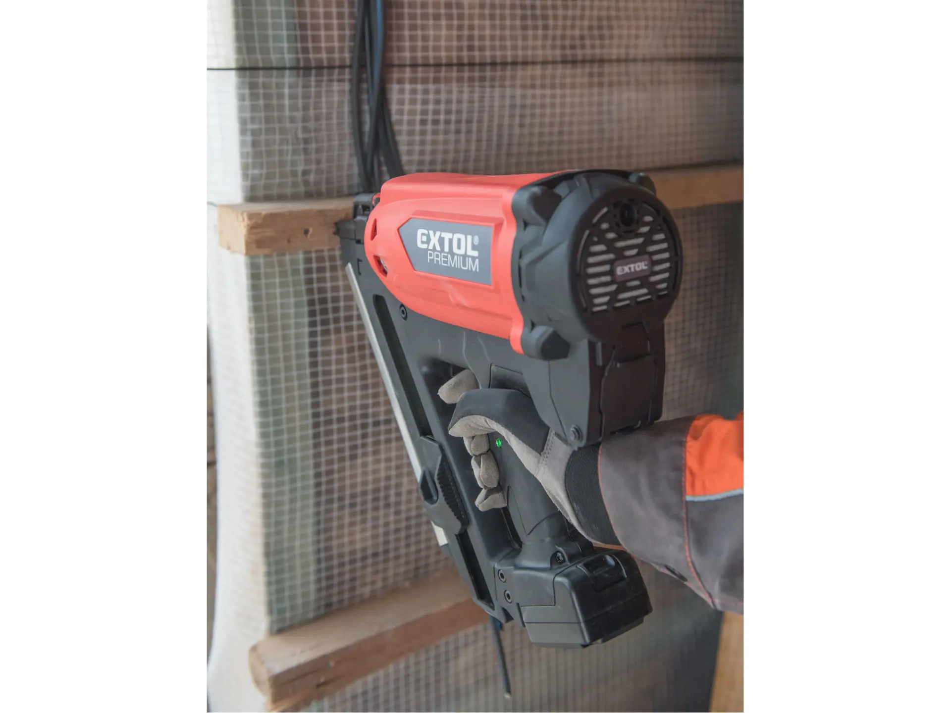 Silná hřebíkovačka na konstrukce se zážehovým plynovým pohonem je určena pro náročné nebo celodenní práce ve výškách a na stavbách, pro výrobu konstrukcí ze dřeva např. stloukáním krovů při stavbě střechy a celých dřevostaveb, pro výrobu bednění apod. s použitím hladkých či vroubkovaných hřebíků o délce 50-90 mm s úhlem sklonu v pásu 34°. Hřebíkovačka umožňuje nastřelit mnohonásobně více hřebíků na jednu plynovou kartuš (až 1200ks) a 5000ks na jednu baterii oproti čistě aku hřebíkovačkám. V porovnání s pneumatickými hřebíkovačkami zase nemusíte tahat kompresor s hadicemi a hřebíkovačka má tichý provoz. Hřebíkovačka umožňuje snadné nastavení hloubky zaražení hřebíku do dřeva. Při přerušení práce ji lze zavěsit za pracovní opasek. Díky tomu, že je hřebíkovačka poháněna zážehem plynu z malé plynové kartuše, je lehká a má vysoký výkon. Součástí hřebíkovačky je také malá a lehká odnímatelná nabíjecí Li-ion baterie sloužící pro zážeh plynu. Náhradní nádobky s hořlavým plynem o objemu 80 ml určené pro pohon plynových hřebíkovaček lze zakoupit v obchodní síti, např. od výrobce BOSTITCH, objednávací specifikace nádobky: FC 80MLHPB nebo ekvivalent od jiných výrobců.