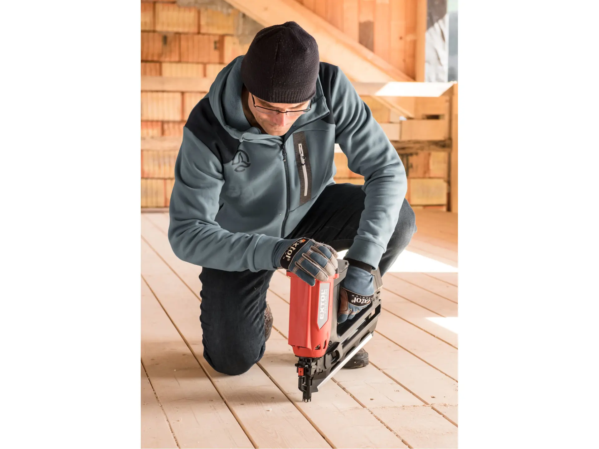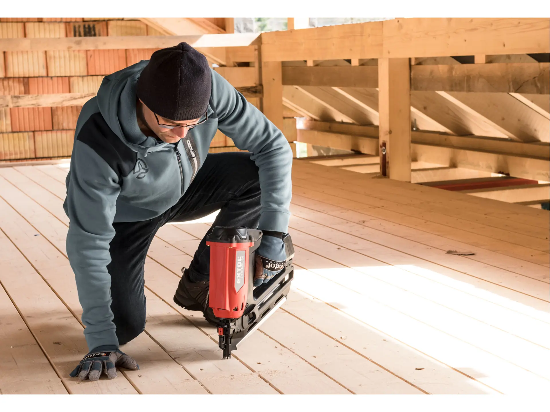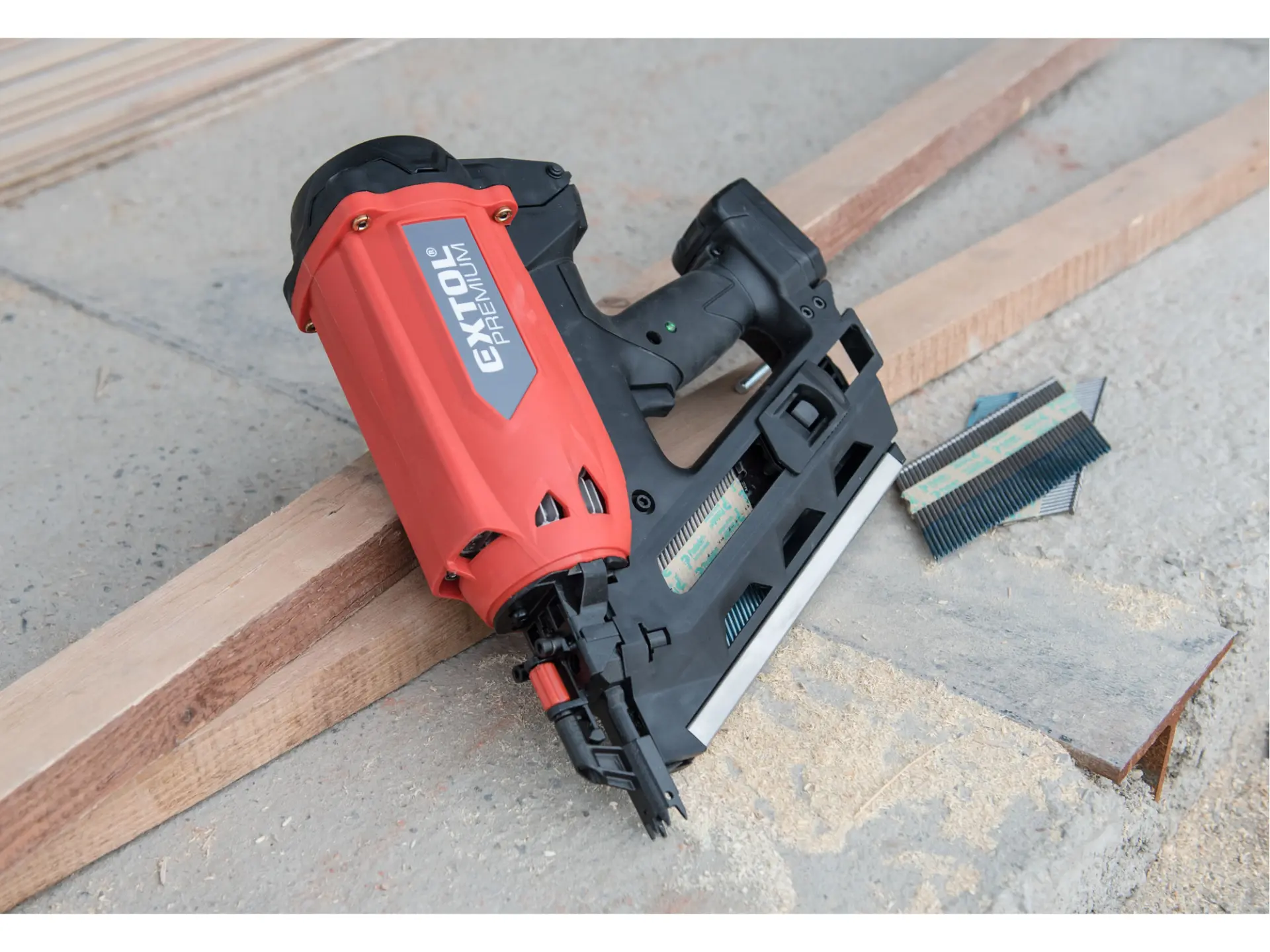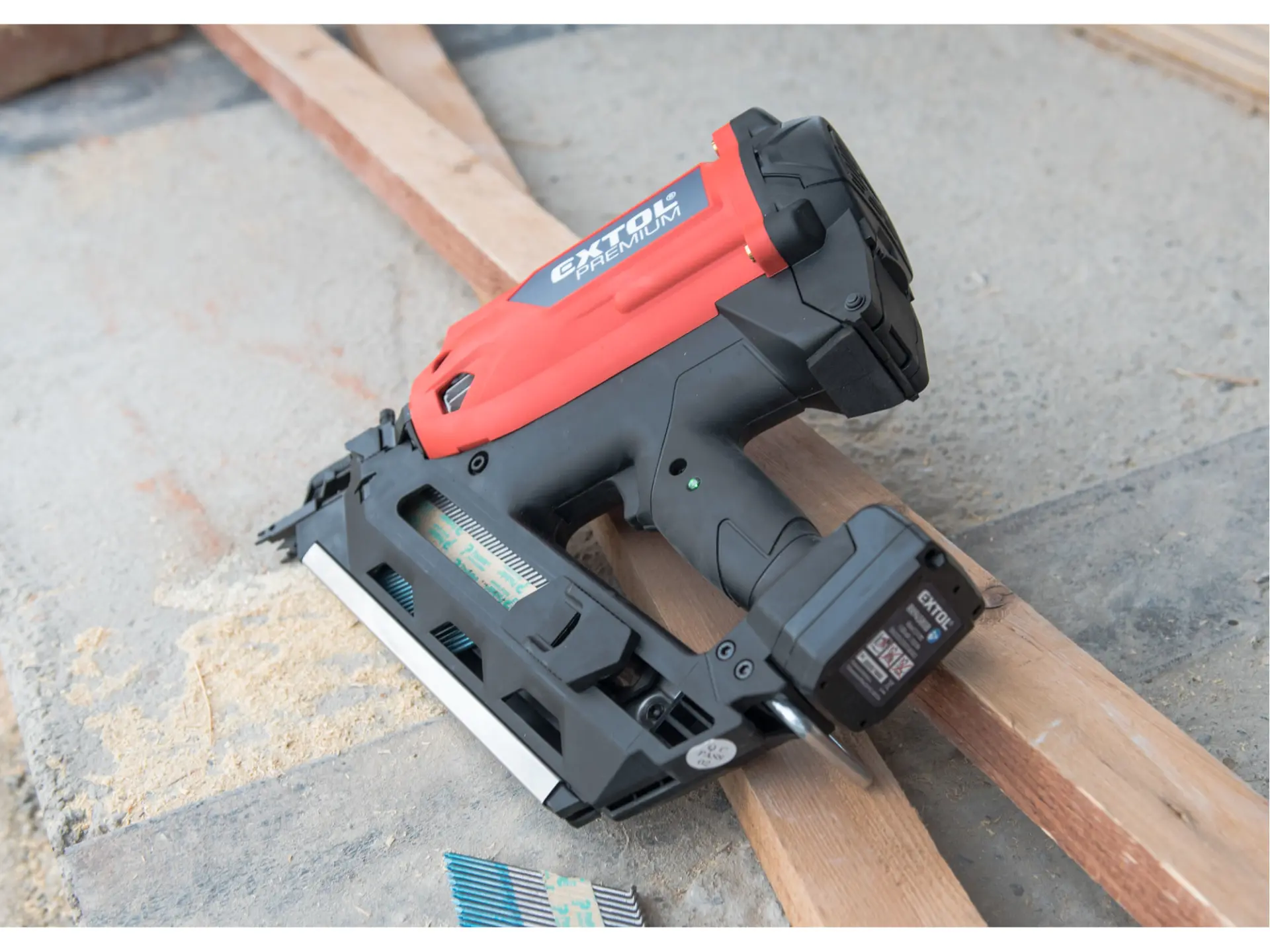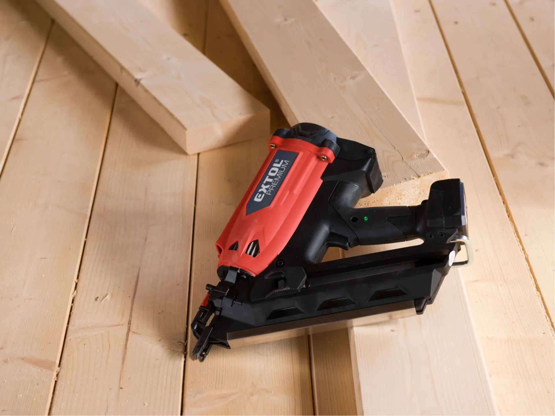 Silná hřebíkovačka na konstrukce se zážehovým plynovým pohonem je určena pro náročné nebo celodenní práce ve výškách a na stavbách, pro výrobu konstrukcí ze dřeva např. stloukáním krovů při stavbě střechy a celých dřevostaveb, pro výrobu bednění apod. s použitím hladkých či vroubkovaných hřebíků o délce 50-90 mm s úhlem sklonu v pásu 34°. Hřebíkovačka umožňuje nastřelit mnohonásobně více hřebíků na jednu plynovou kartuš (až 1200ks) a 5000ks na jednu baterii oproti čistě aku hřebíkovačkám. V porovnání s pneumatickými hřebíkovačkami zase nemusíte tahat kompresor s hadicemi a hřebíkovačka má tichý provoz. Hřebíkovačka umožňuje snadné nastavení hloubky zaražení hřebíku do dřeva. Při přerušení práce ji lze zavěsit za pracovní opasek. Díky tomu, že je hřebíkovačka poháněna zážehem plynu z malé plynové kartuše, je lehká a má vysoký výkon. Součástí hřebíkovačky je také malá a lehká odnímatelná nabíjecí Li-ion baterie sloužící pro zážeh plynu. Náhradní nádobky s hořlavým plynem o objemu 80 ml určené pro pohon plynových hřebíkovaček lze zakoupit v obchodní síti, např. od výrobce BOSTITCH, objednávací specifikace nádobky: FC 80MLHPB nebo ekvivalent od jiných výrobců.