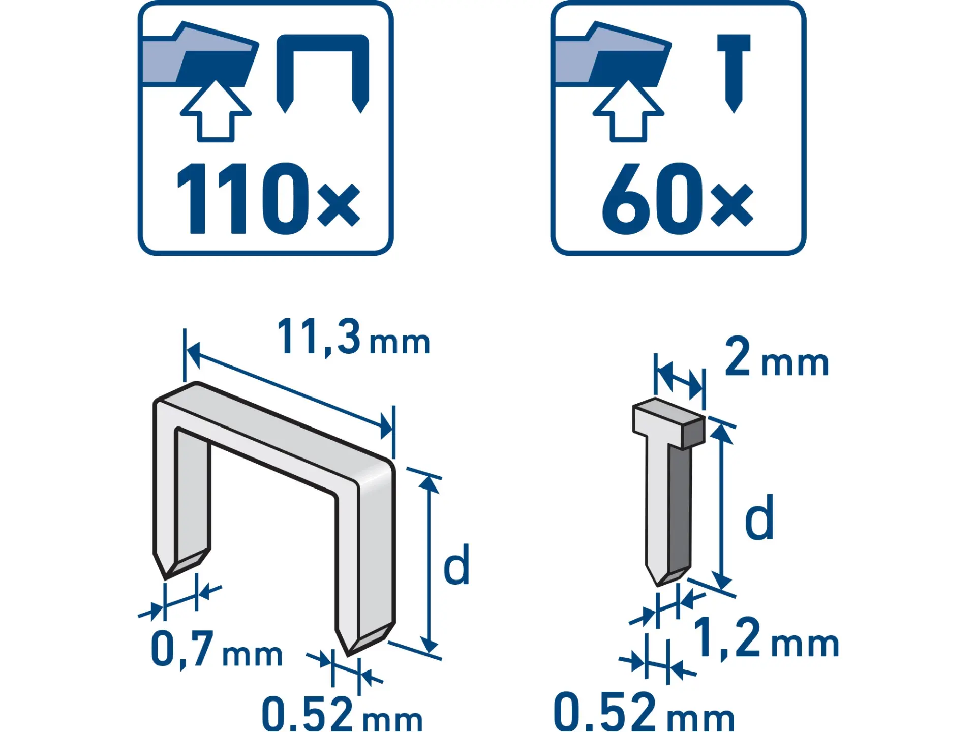 spony, balení 1000ks, 8mm, 11,3x0,52x0,70mm