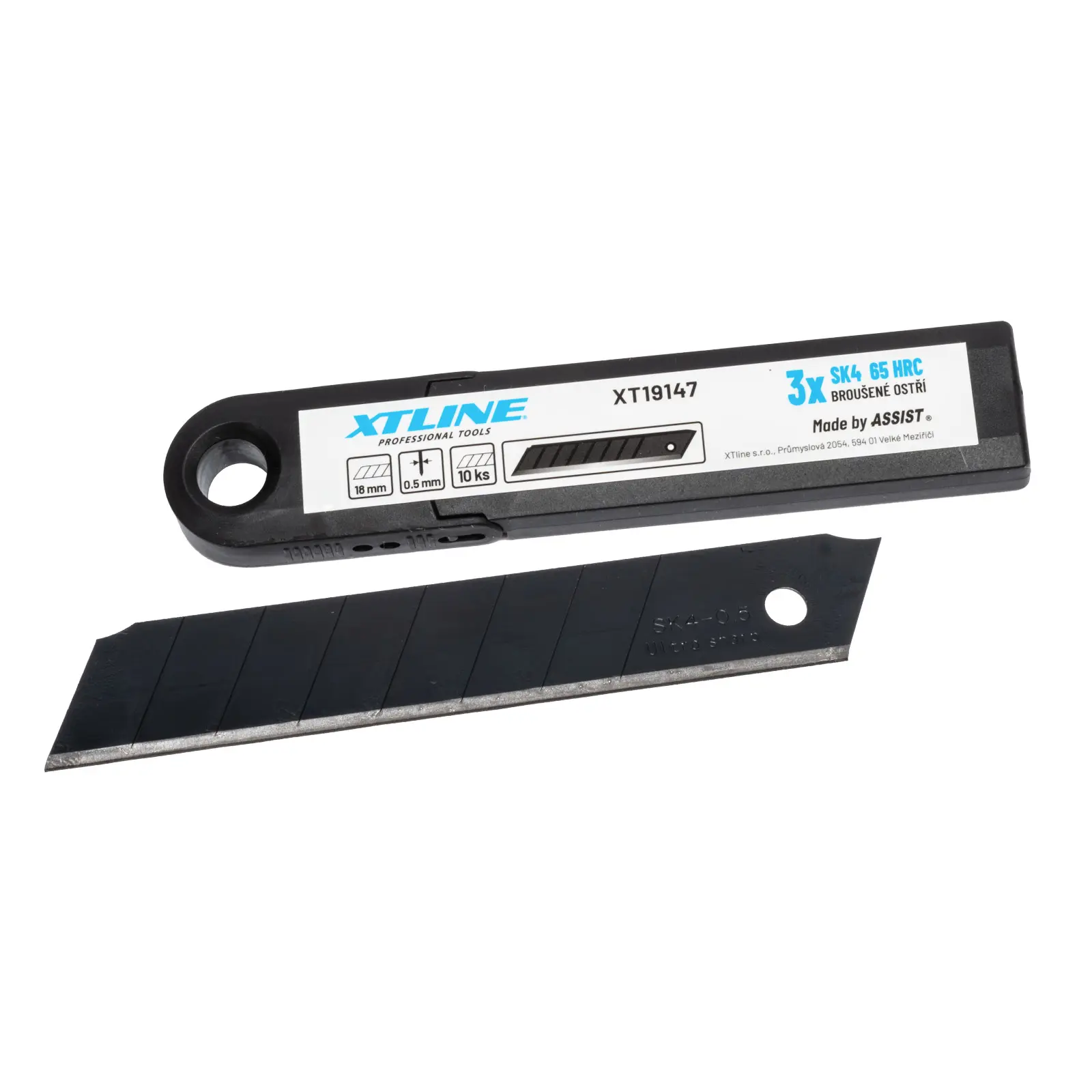 Náhradní čepele 18 mm s břitem SK4 pro všechny druhy ulamovacích nožů. Balení 10 kusů v plastové krabičce s okem na zavěšení. Broušení břitů s laserovou technologii zvyšuje životnost. Břit SK4 s černou povrchovou úpravou zaručuje vysokou ostrost a tvrdost. Břit ostřený pod třemi úhly prodlužuje životnost čepele.