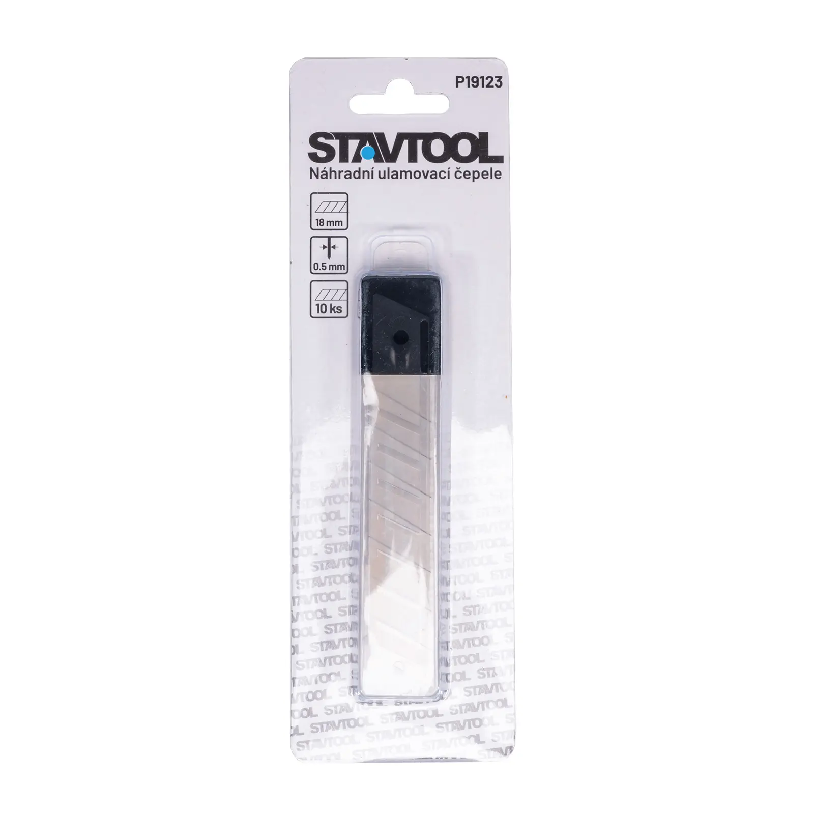 Náhradní čepele do ulamovacích nožů. Balení 10ks v plastové krabičce s okem pro zavěšení.