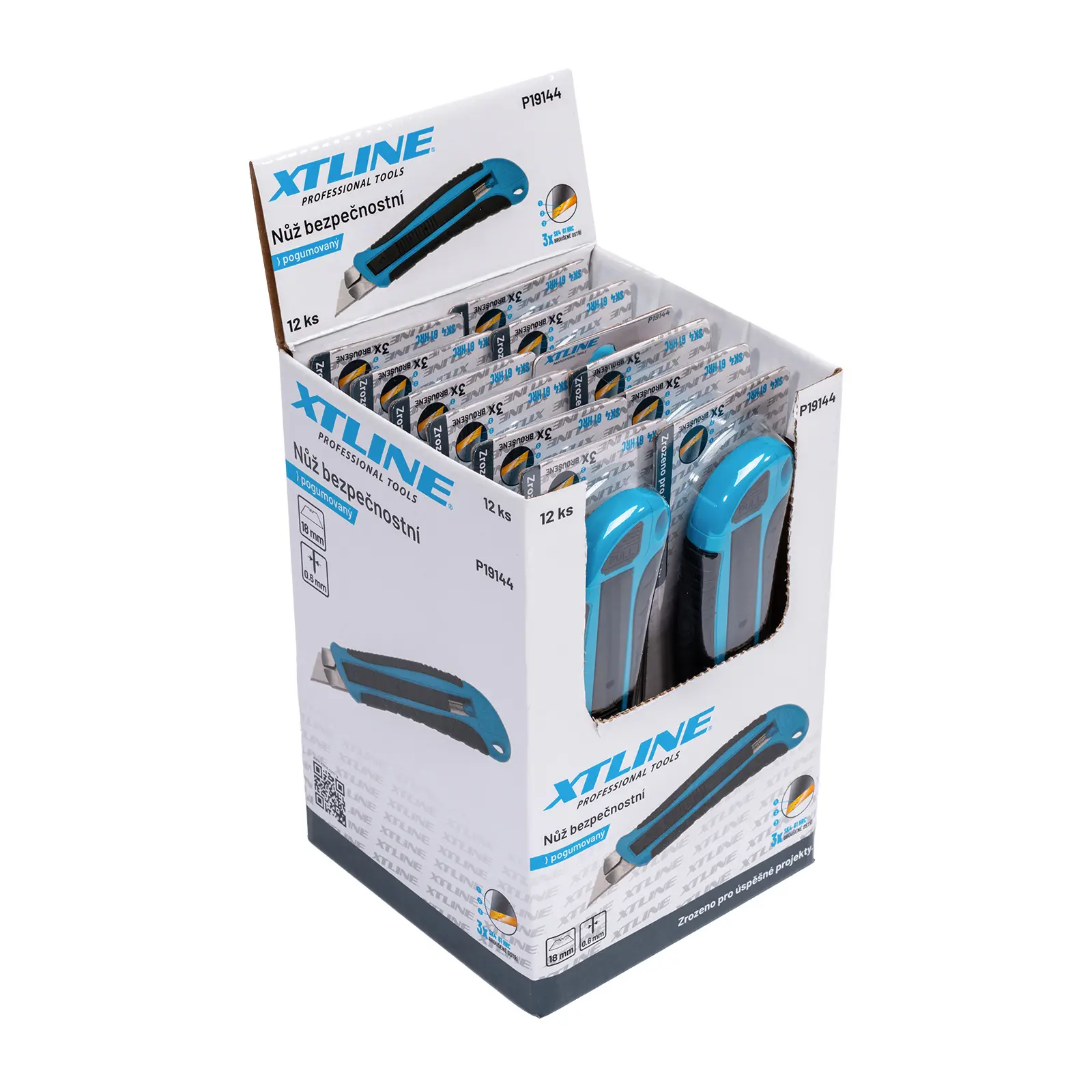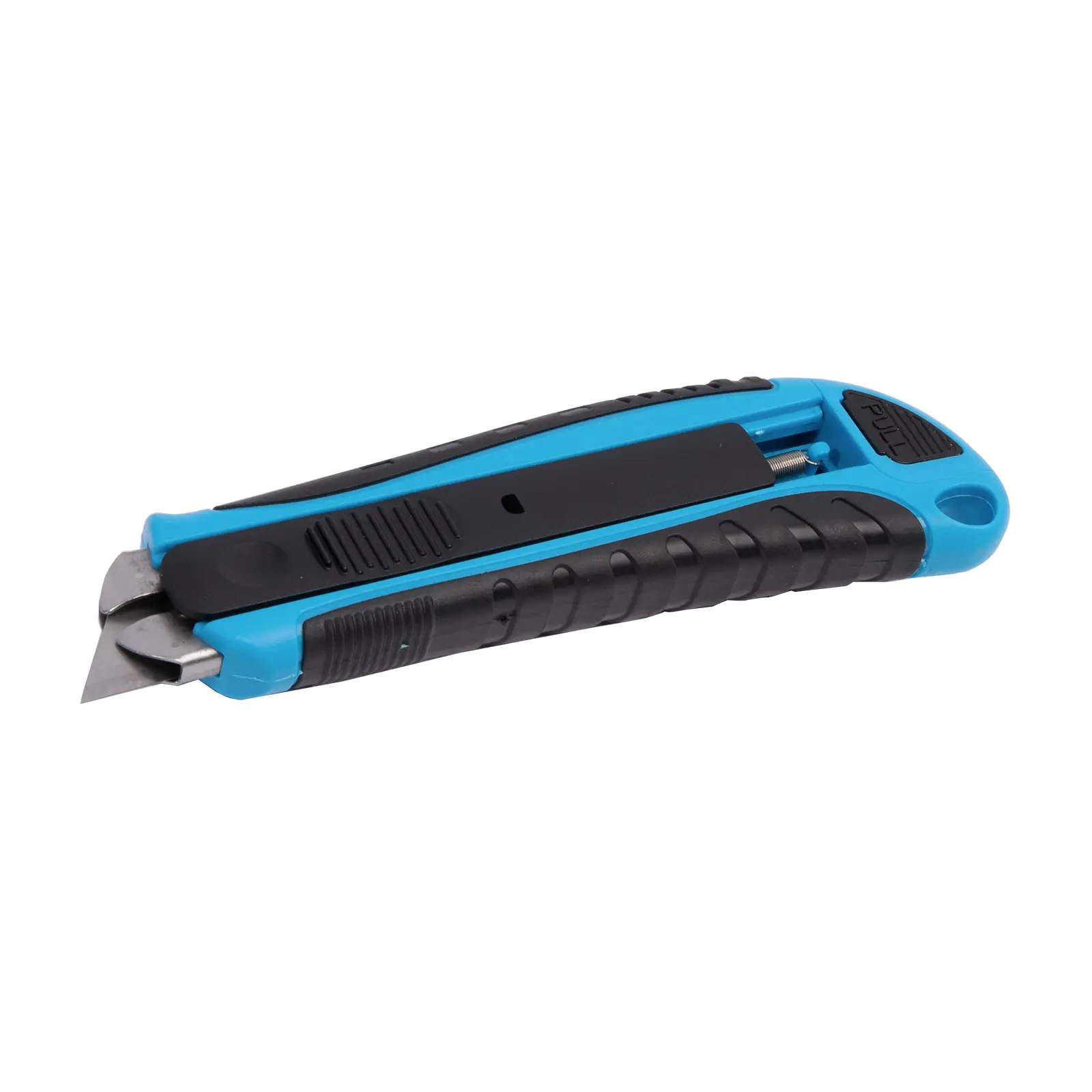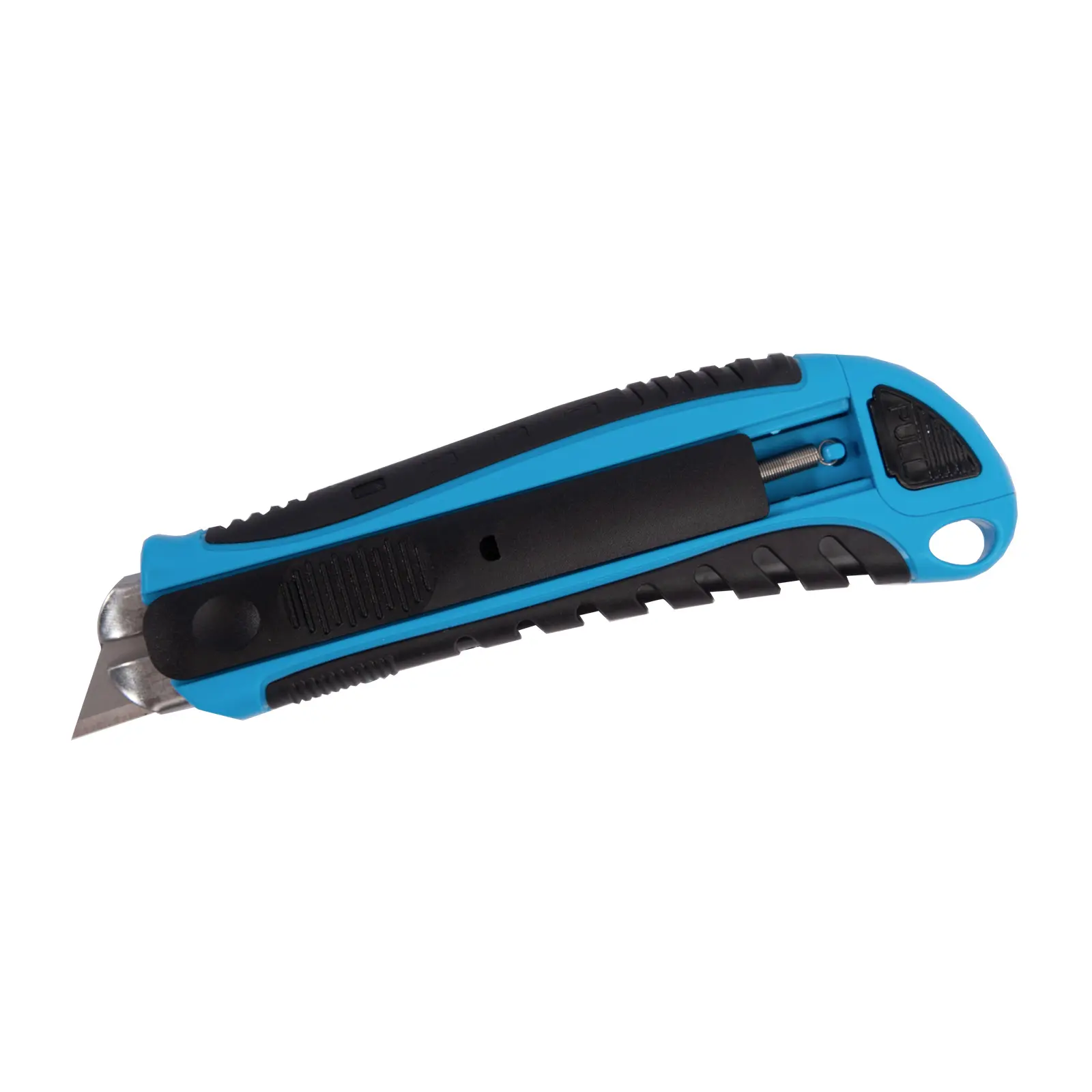Pružinový systém zatahování čepele - při vedení řezu stačí uvolnit ovladač čepele, dojde k automatickému zasunutí. Ideální pro řezání kartonu, lepenky apod.