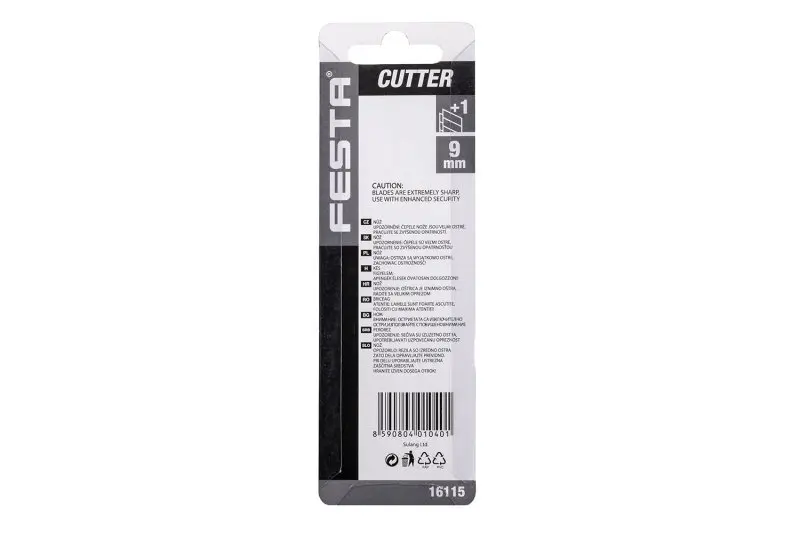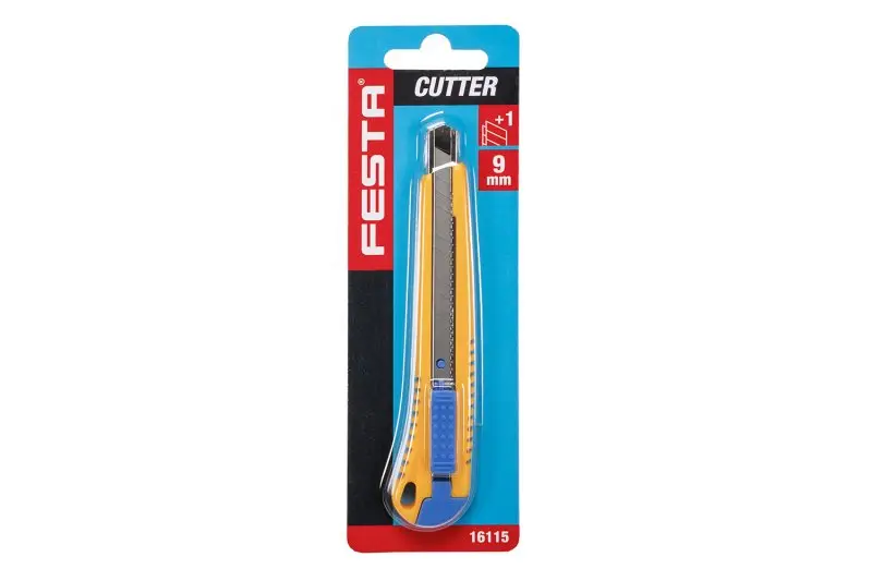Odlamovací nůž FESTA 9mm, kvalitní materiály, kovová lišta, automatická aretace s pojistkou, 1 náhradní břity, blistr.