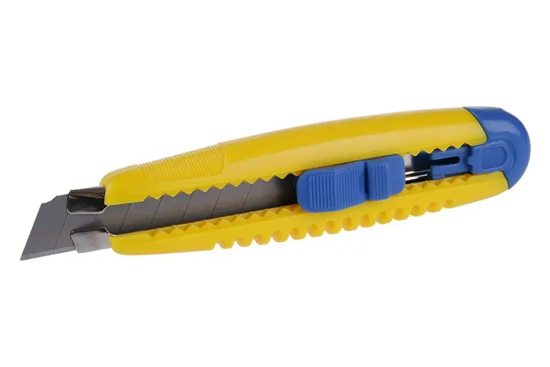 Odlamovací nůž FESTA 18mm, kvalitní materiály, kovová lišta, automatická aretace s pojistkou, do nože lze umístit až 2 náhradní břity, blistr.