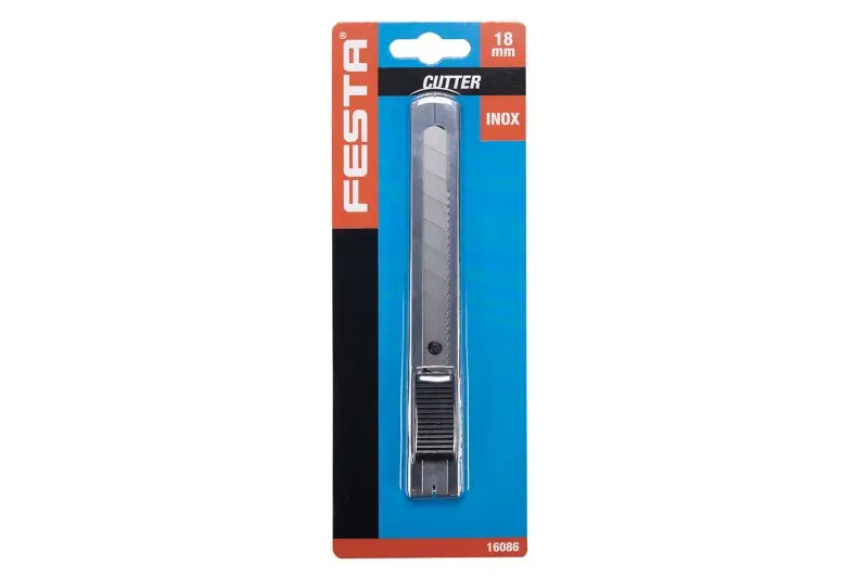 Odlamovací nůž 18mm, praktické celonerezové tělo s klipem.