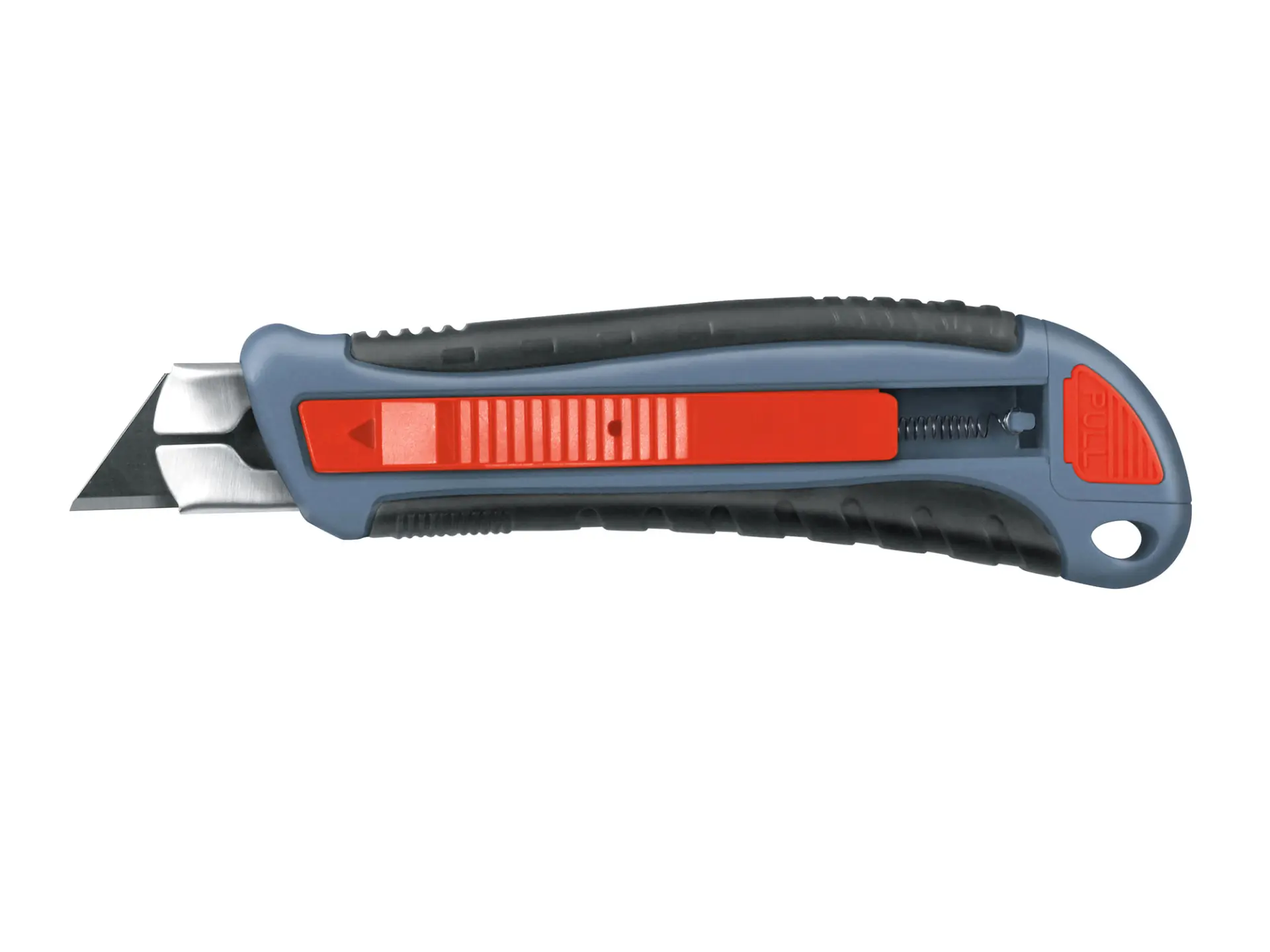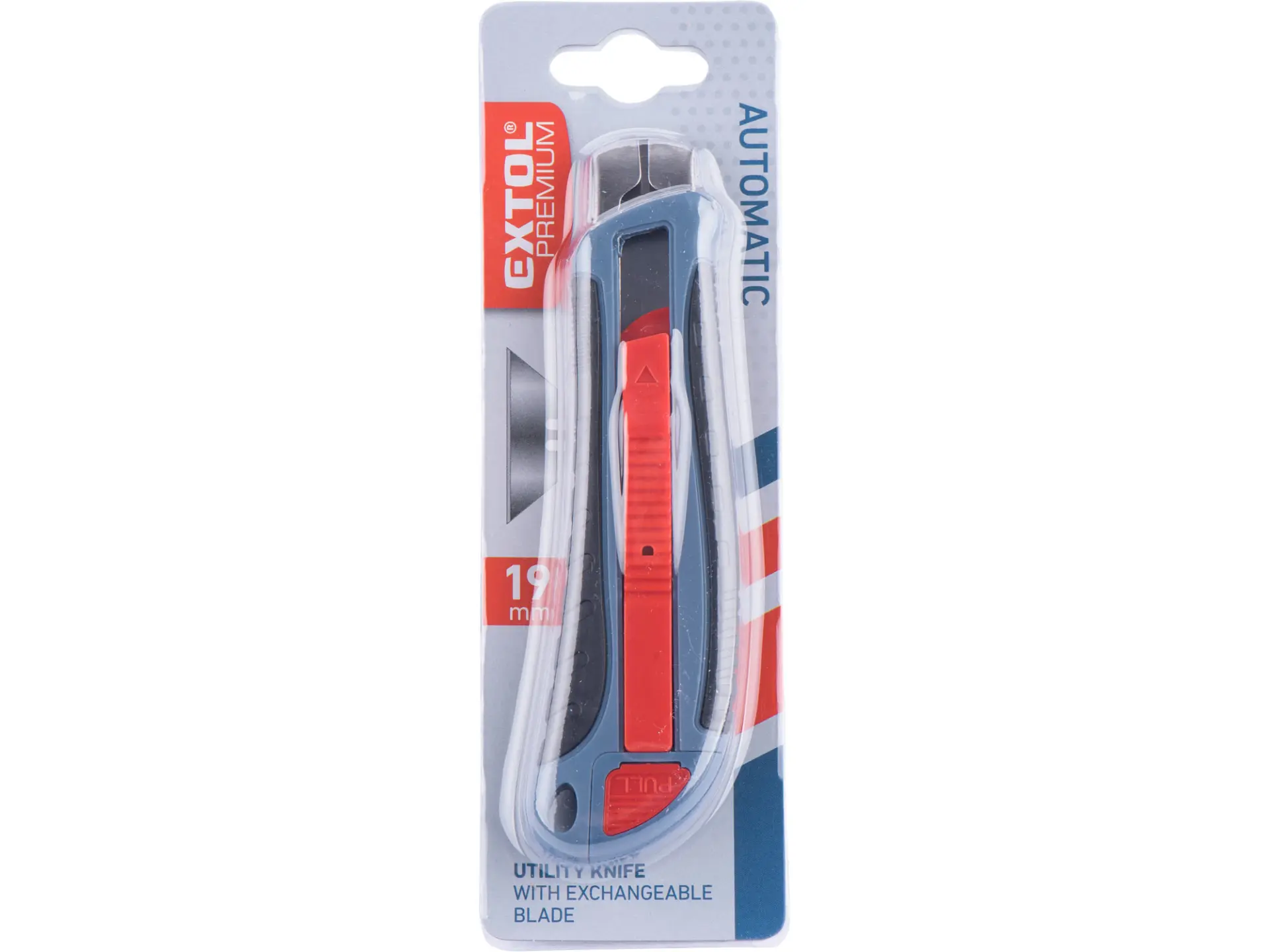 • bezpečnostní pružinový mechanismus automatického zasunutí břitu po uvolnění přítlaku palce na tlačítko vysunovače