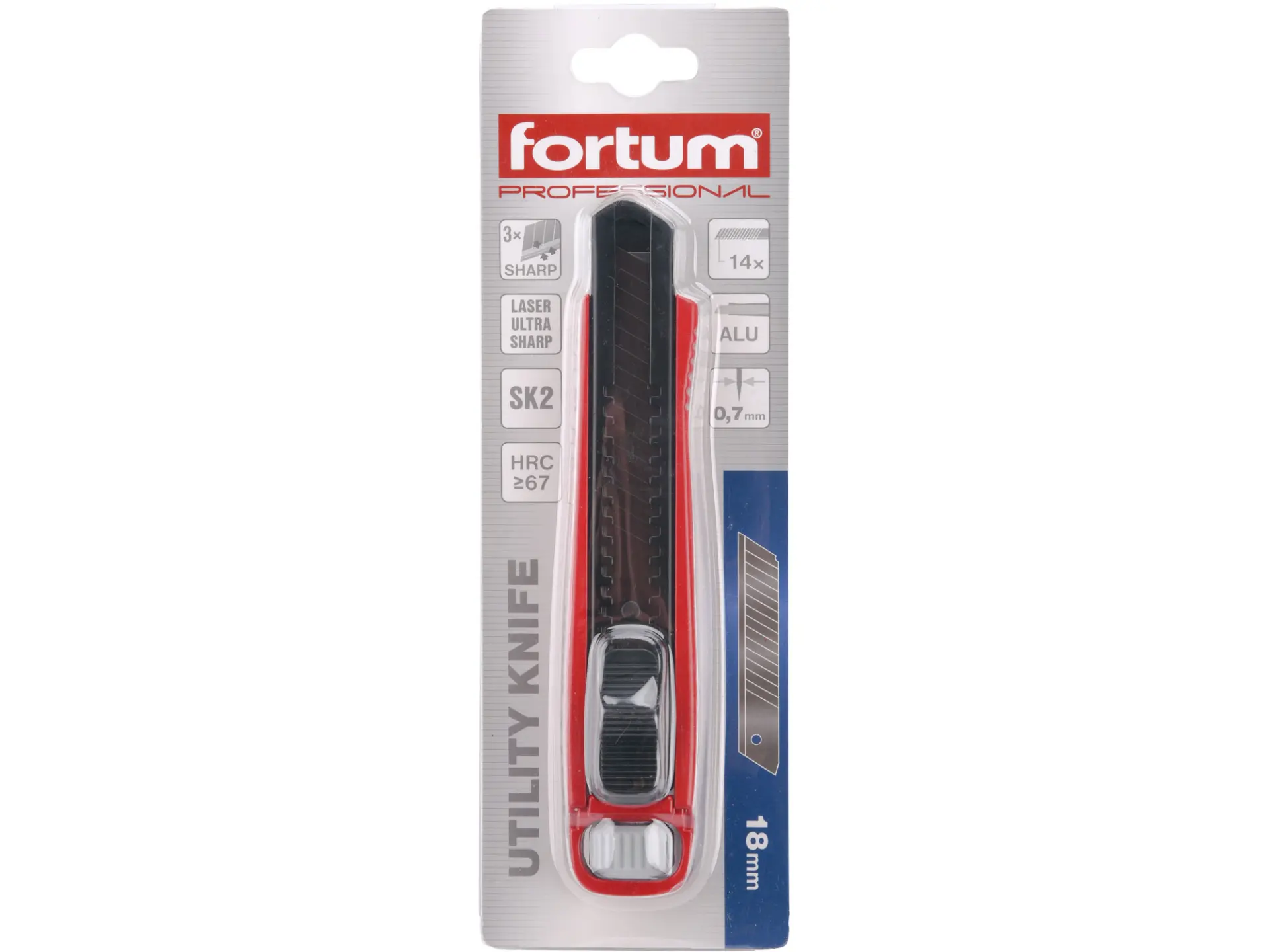 • nůž disponuje hliníkovou rukojetí a nejtvrdším ulamovacím břitem (67HRC) vyrobeným z materiálu SK2 s laserovou technologií ULTRA SHARP a postupným 3x broušeným ostřím prodlužuje životnost břitu až 5x oproti běžně užívaným břitům z oceli s vyšším obsahem uhlíku