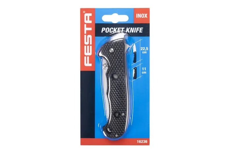 Nůž zavírací CLIP. Délka zavřeného nože je 140 mm. Nůž s velkým zavíracím nožem pro různé způsoby použití. Rukojeť plastová s uchycením na opasek. Hmotnost 0,881 kg