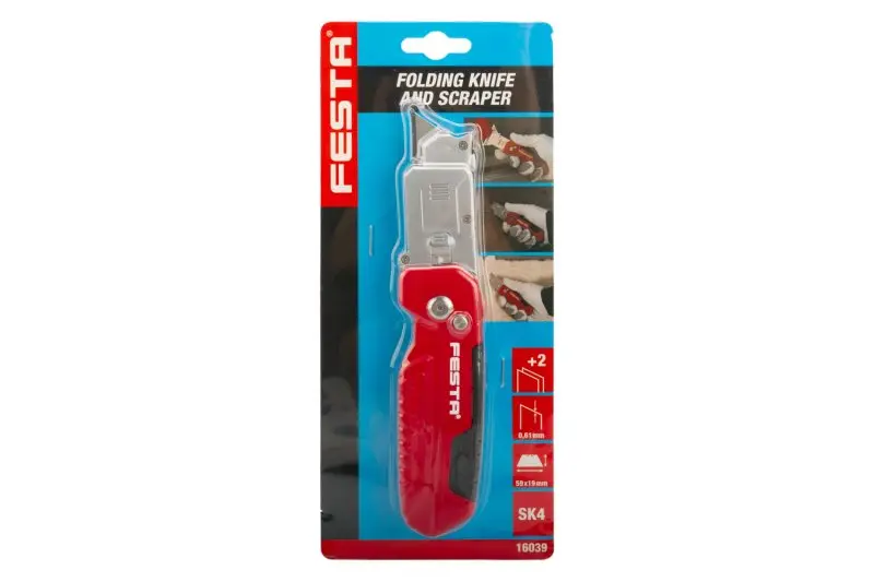 • speciální konstrukce zavírací části umožňuje snadno přeměnit nůž na škrabku