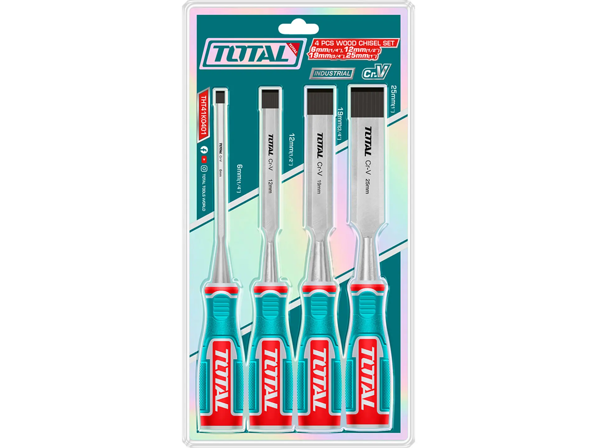 Sada 4ks dlát 6,12,19 a 25mm. Vyrobeno z kvalitní CrV oceli.