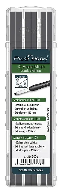 TUHY NÁHRADNÍ HRANATÉ PRO BIG Dry - TUHA 10H - PÍŠE NA KÁMEN A BETON - ČERNÁ