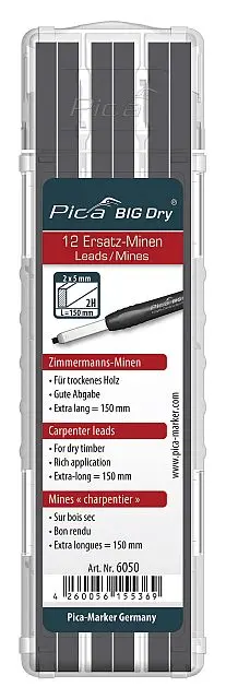 TUHY NÁHRADNÍ HRANATÉ PRO BIG Dry - TUHA 2H - PÍŠE NA SUCHÉ DŘEVO - ČERNÁ