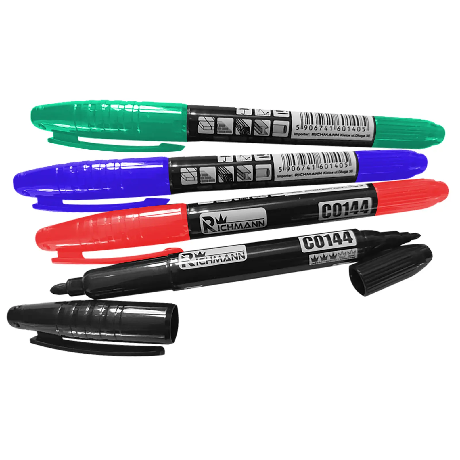 Sada popisovačů jsou ve čtyřech barvách (zelená, modrá, červená, černá). Typ popisovače je oboustranný - silný/tenký.