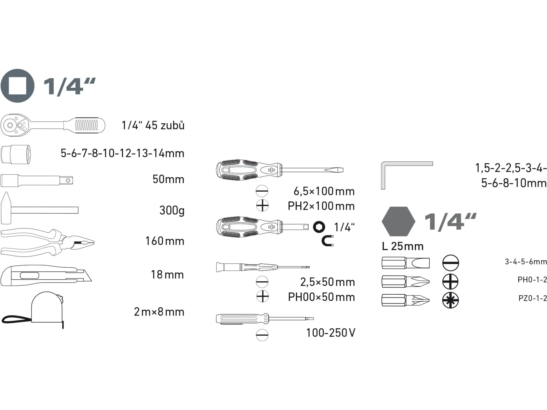 1/4"(L25mm): (-)3-4-5-6mm, PH0-1-2, PZ0-1-2 (CrV)