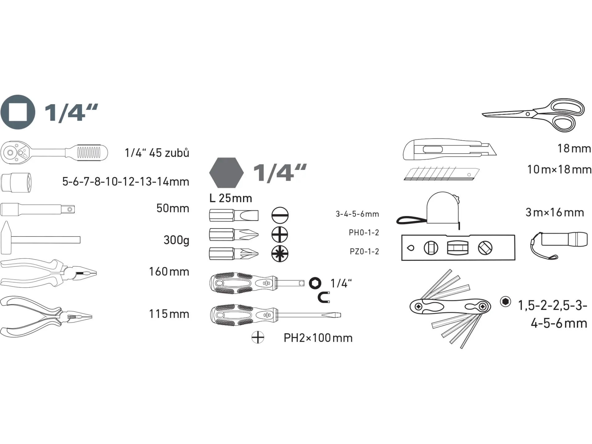 vodováha 170mm, svítilna LED 60lm, nůžky kancelářské 190mm