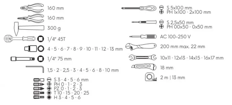 • univerzální sada nářadí osazená nejčastěji používaným nářadím, které by nemělo chybět v žádné domácnosti
