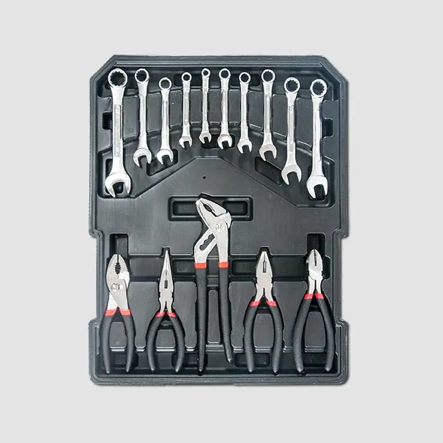 Sada 188 dílů nářadí v hliníkovém kufru na kolečkách. Nářadí uloženo na plastových platech s prolisy pro každý kus zvlášť, což zabraňuje smíchání a vysypání nářadí při převozu. Nezbytný pomocník každého kutila a montéra, ideální pro převoz v autě.