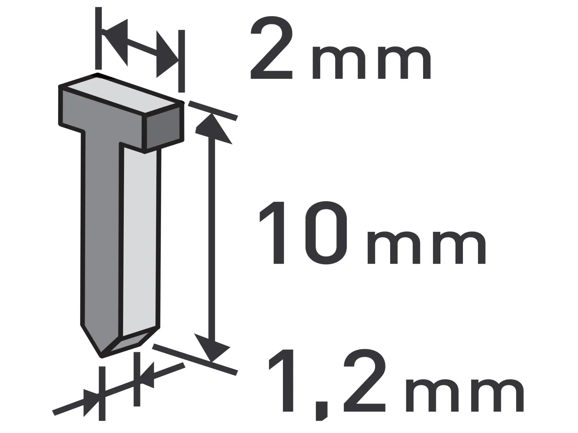 10mm, 2,0x0,52x1,2mm
