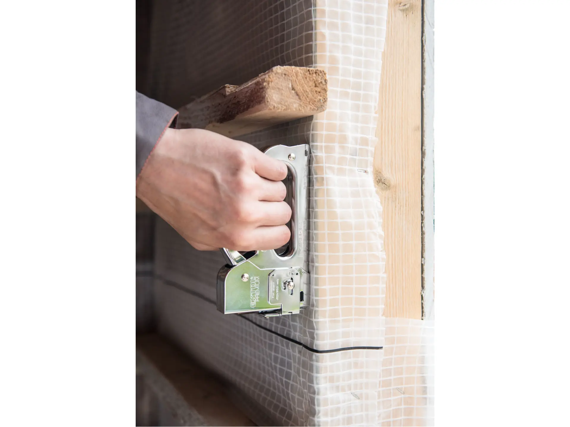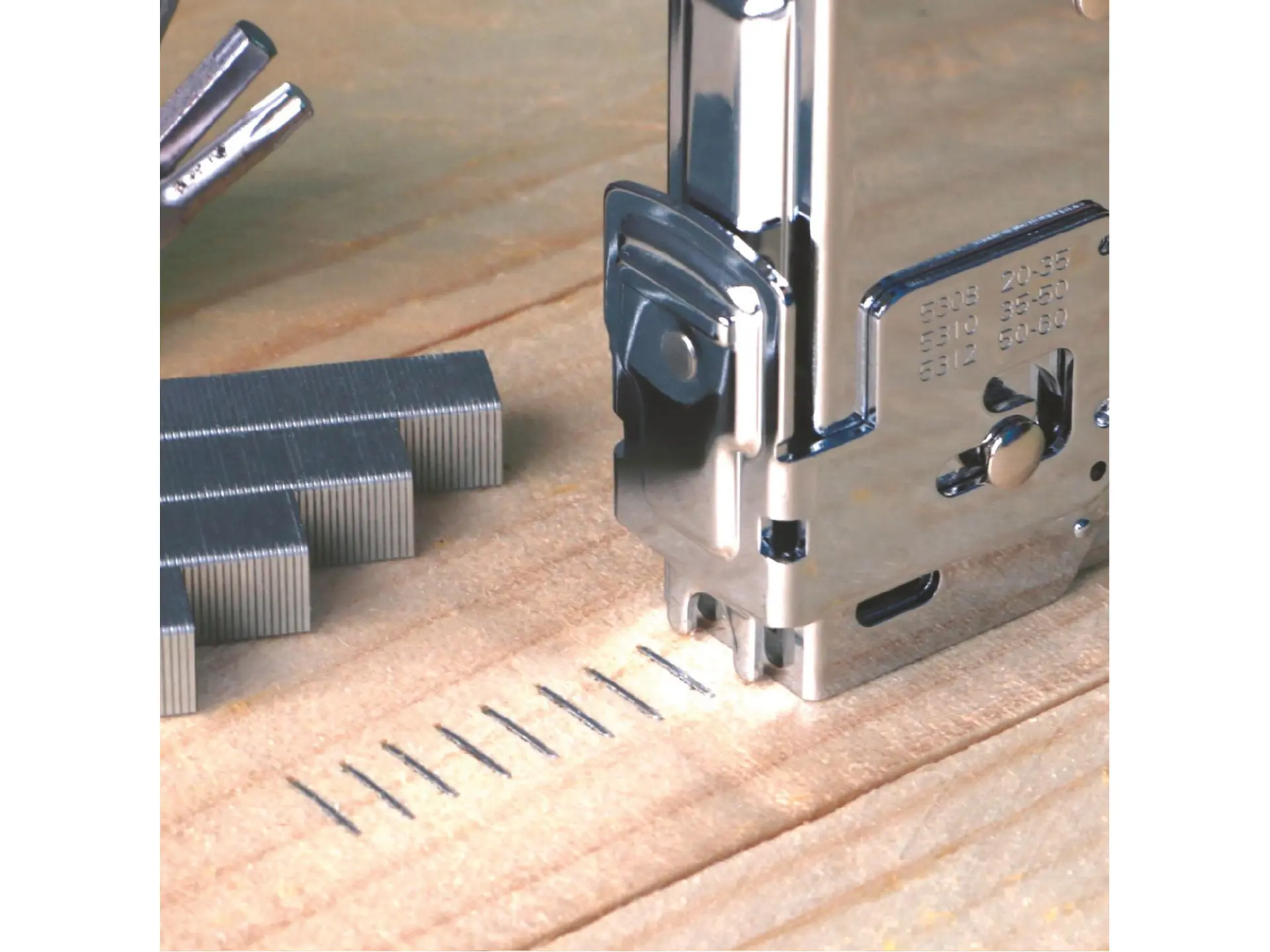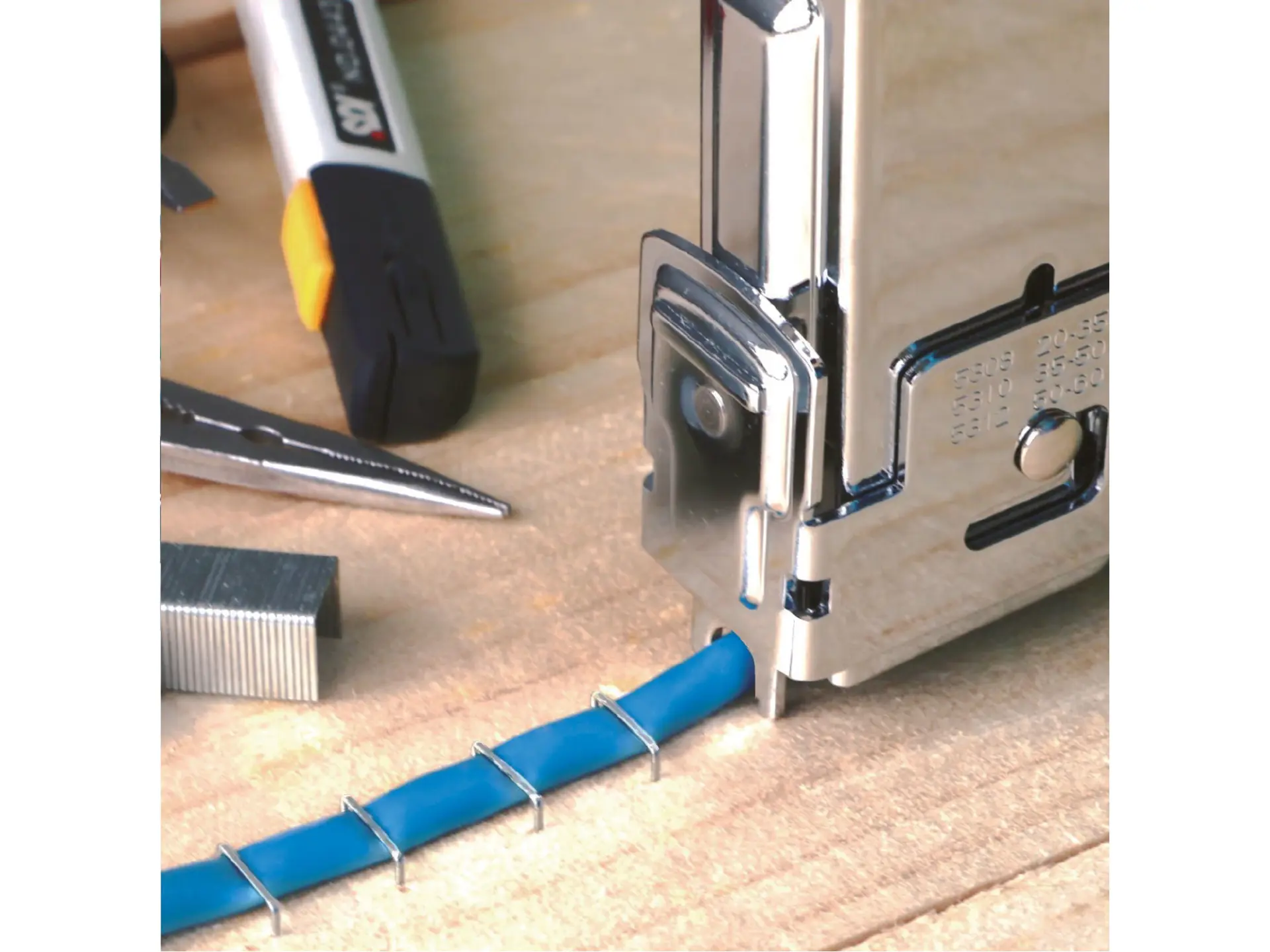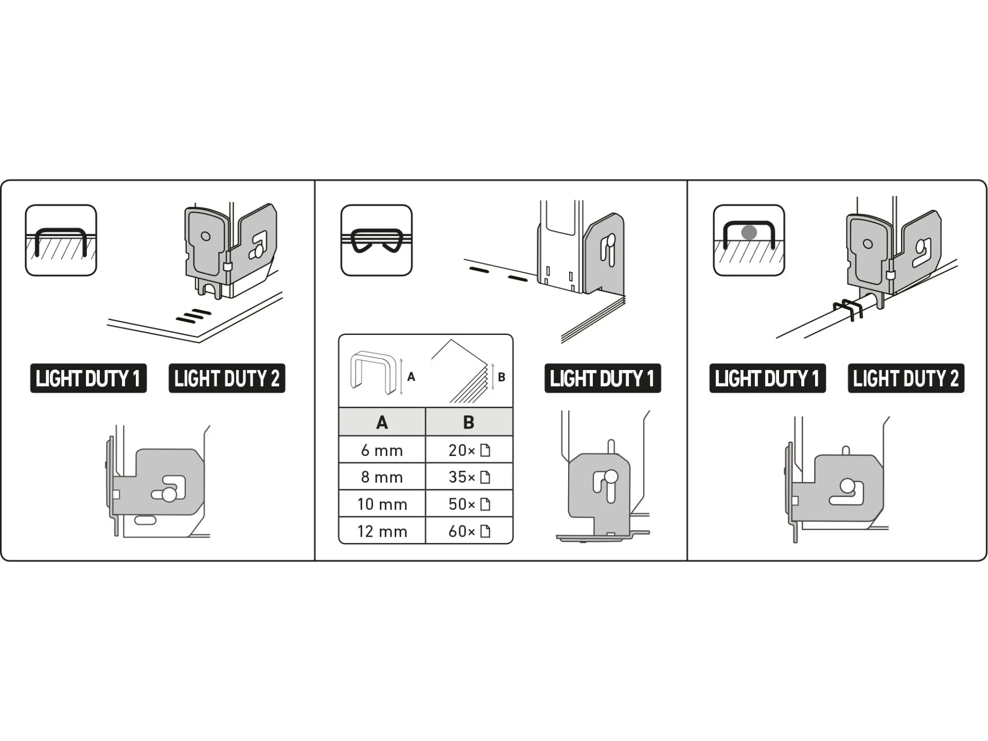 • 3.funkce částečného/dočasného nastřelení spony do materiálu - spona je nastřelena obvyklým způsobem avšak 5-6mm z celkové výšky spony zůstane nad materiálem; toto lze využít k částečné popř. dočasné fixaci různých měkčích materiálů, profilů atd.