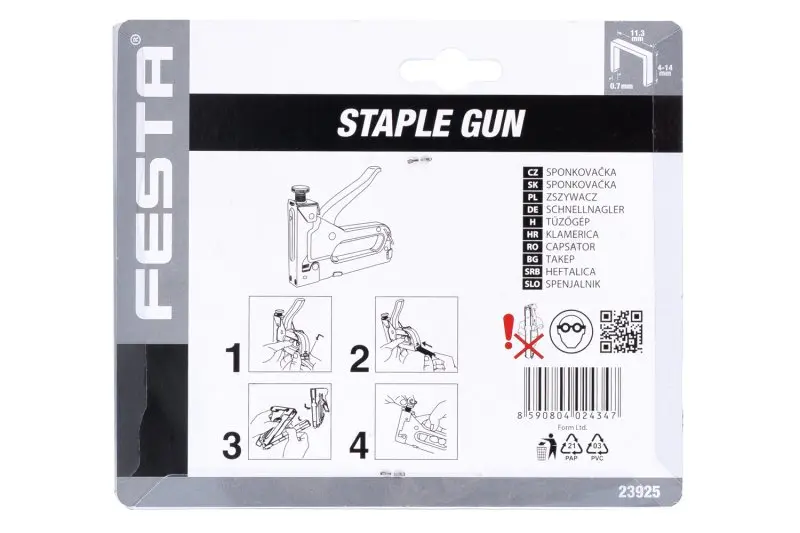 Robustní odolná konstrukce, Přesnost sponkování-možnost seřízení hloubky zaražení spony, Spony: 4-14mm(23904-14/23929-34), Váha: 650g, Snadné nabíjení, Použití: čalounění, přichycení izolačních folií, parozábran, papíru, kartonu, koberců.