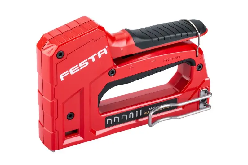 • klip na opasek, průzor na naplnění zásobníku sponami