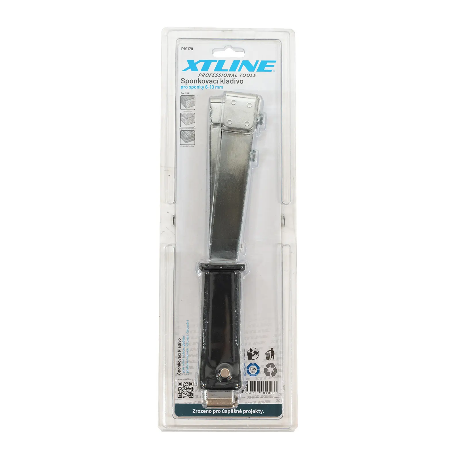 Celokovové sponkovací kladivo s gumovou rukojetí lze použít na střešní izolace, instalaci koberců, tkanin apod.